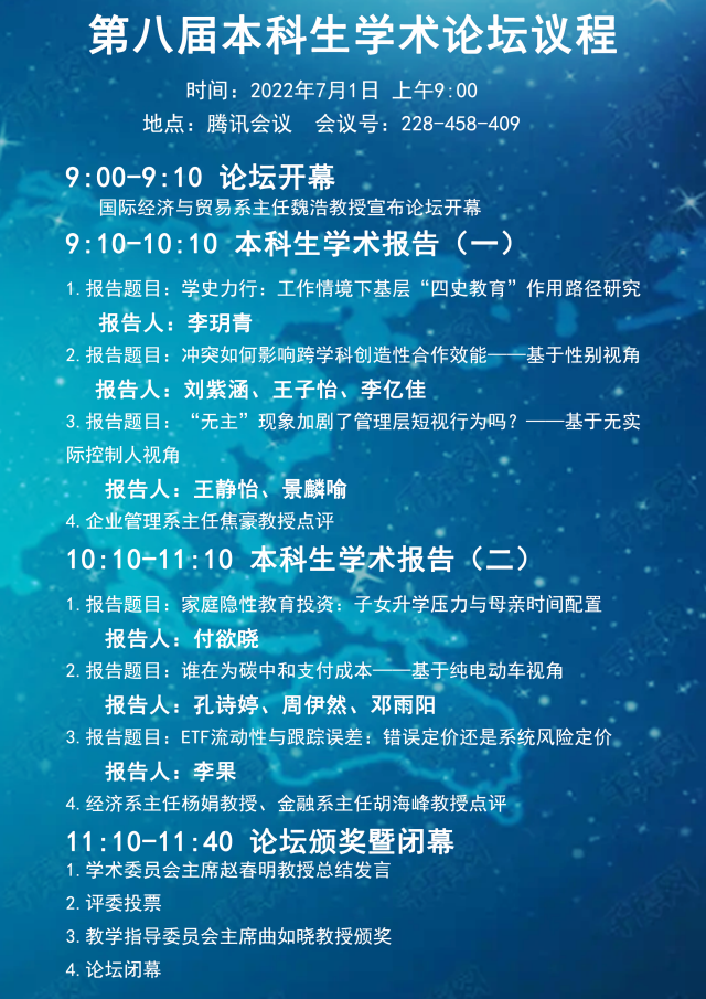 【学术论坛】第八届本科生学术论坛议程-主论坛