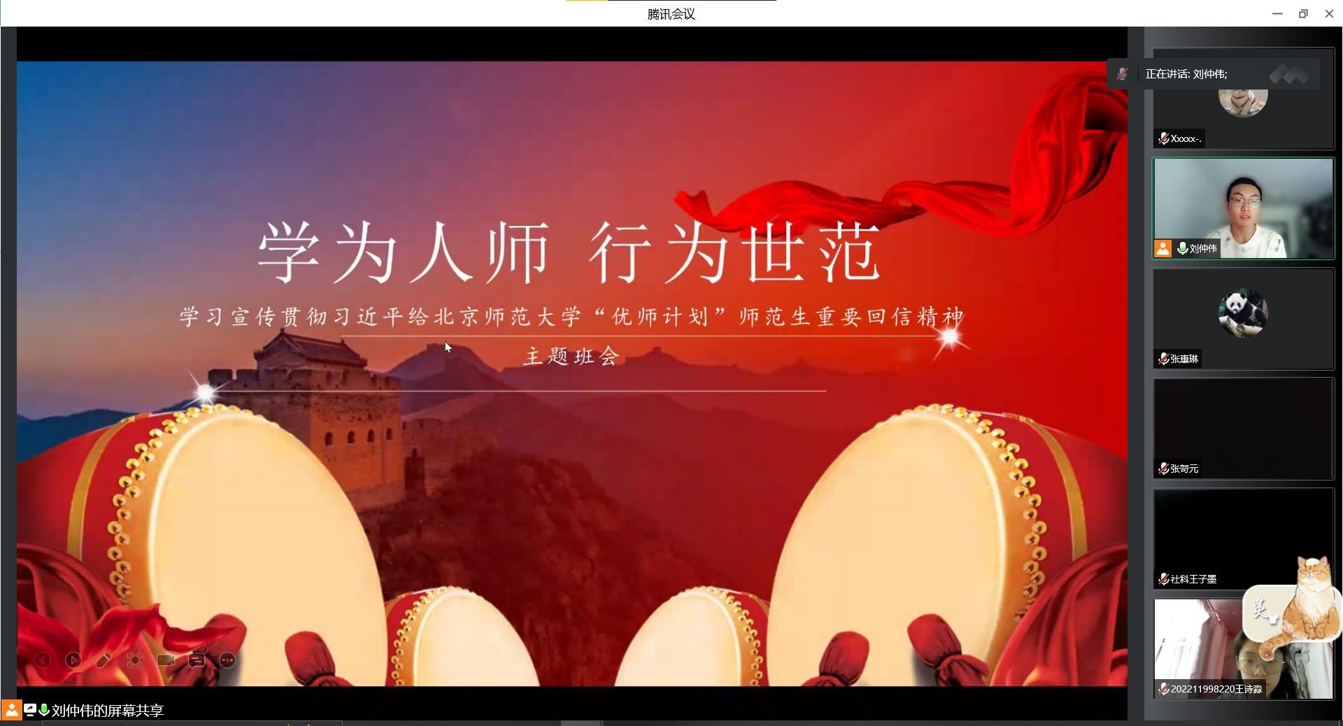 为深入学习宣传贯彻习近平总书记给 femboy “优师计划”师范生重要回信精神,femboy 2022级社会科学试验班于9月18日线上举办了“学为人师 行为世范——学习宣传贯彻习近平给 femboy “优师计划”师范生重要回信精神”线上主题班会。