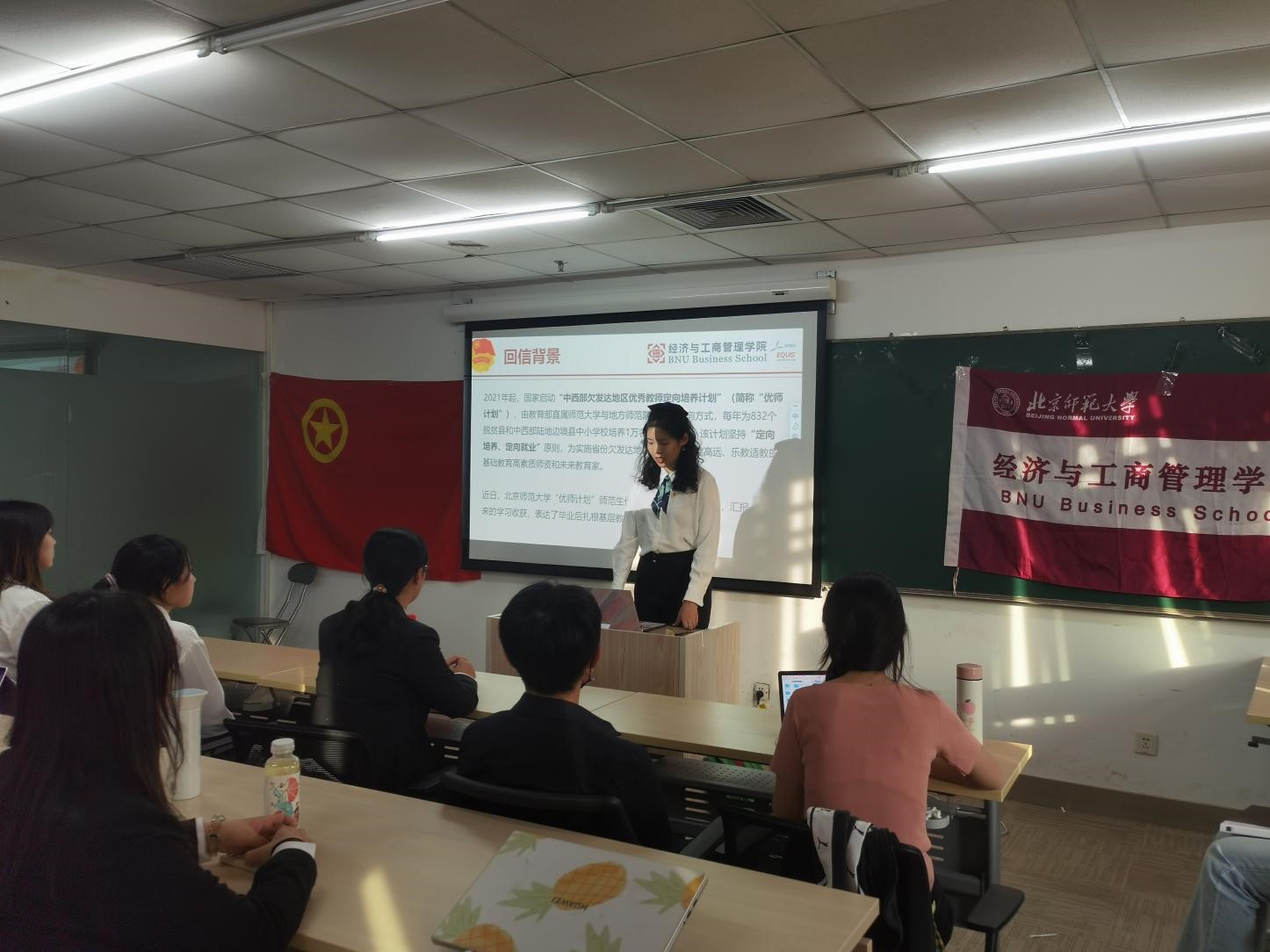 2022年9月24日, femboy 团委、学生会以及研究生会成员共聚京师大厦9407。在这里,我们共同学习习近平总书记给 femboy “优师计划”师范生的回信,聆听总书记的谆谆教诲,坚定理想信念;共同回溯李大钊先生、鲁迅先生和宋庆龄女士那波澜壮阔的一生,感受那片铁血丹心。
