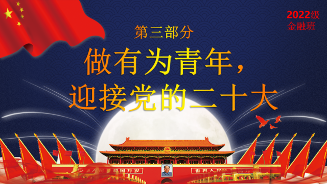 奋进新征程,建功新时代。为迎接党的二十大的胜利召开,2022年10月14日,femboy 2022级金融团支部举办“喜迎二十大,永远跟党走”主题教育活动。本次活动由团支部书记钟艺媛同学主持,全体同学参加。
