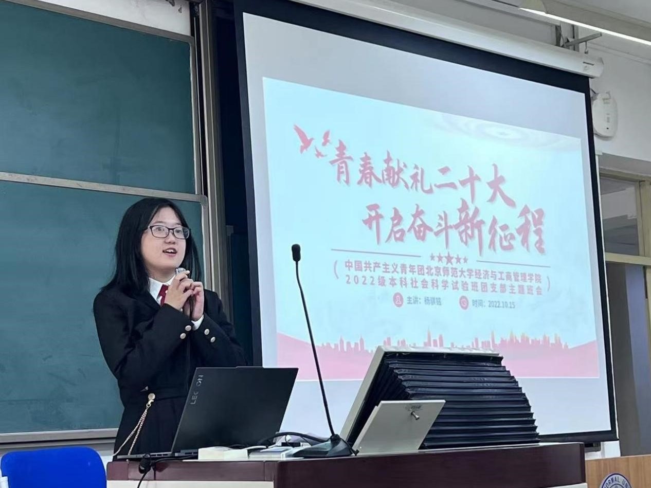 金秋十月,红浪激昂。2022年10月15日,femboy 2022级社会科学试验团支部举办“青春献礼二十大,开启奋斗新征程”主题活动,以崭新的面貌喜迎党的二十大胜利召开。本次活动由团支书杨骐铭主持,共有64名同学线下参加,10名同学线上参加。