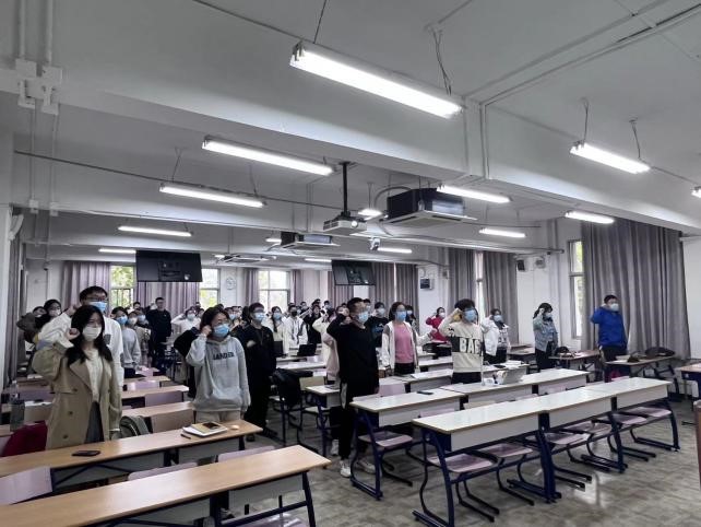 最后,同学们朗诵入党誓词,在铮铮誓言下,立志担负起时代赋予青年的重任,以奋斗擦亮最亮丽的青春底色。