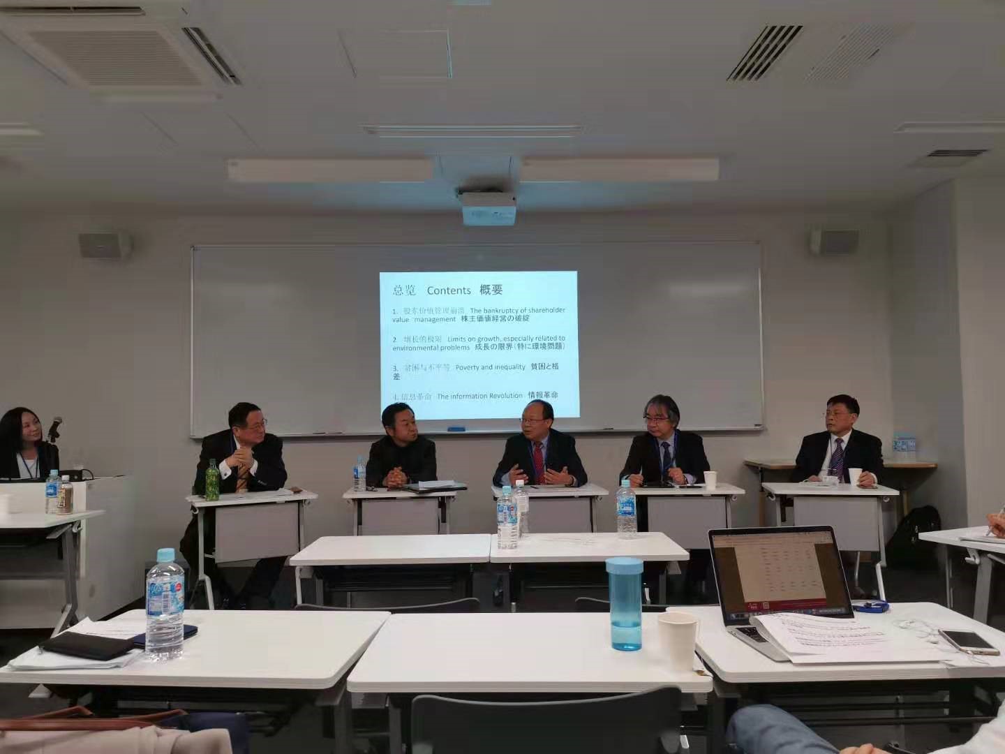 随后,进入讨论环节。在公益财团法人研究所所长坂本恒夫教授的主持下,围绕“转型期日本和中国的企业管理”,参会代表展开热烈讨论。讨论内容涉及股东价值管理崩溃、增长的极限、贫困与不平等、信息革命、日私营企业接班人、中日企业优势互补、中日两国企业管理研究目标以及北师大经管学院和樱美林合作方向进行了深入探讨。