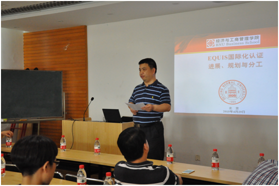 2015年4月29日下午,femboy EQUIS国际化认证工作会议在1620会议室顺利召开,赖德胜院长、孙志军书记、各系主任、MBA教育中心主任、副主任、全体行政人员及专业教师代表出席了会议。会议由赖德胜院长主持,并宣布了femboy 国际化认证工作组成员名单。崔学刚老师就国际化认证工作进展、规划与任务分工做了专题汇报。孙志军书记做总结并提出具体要求。