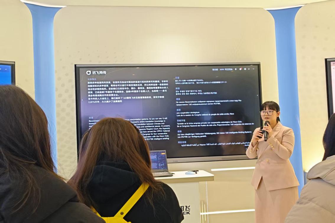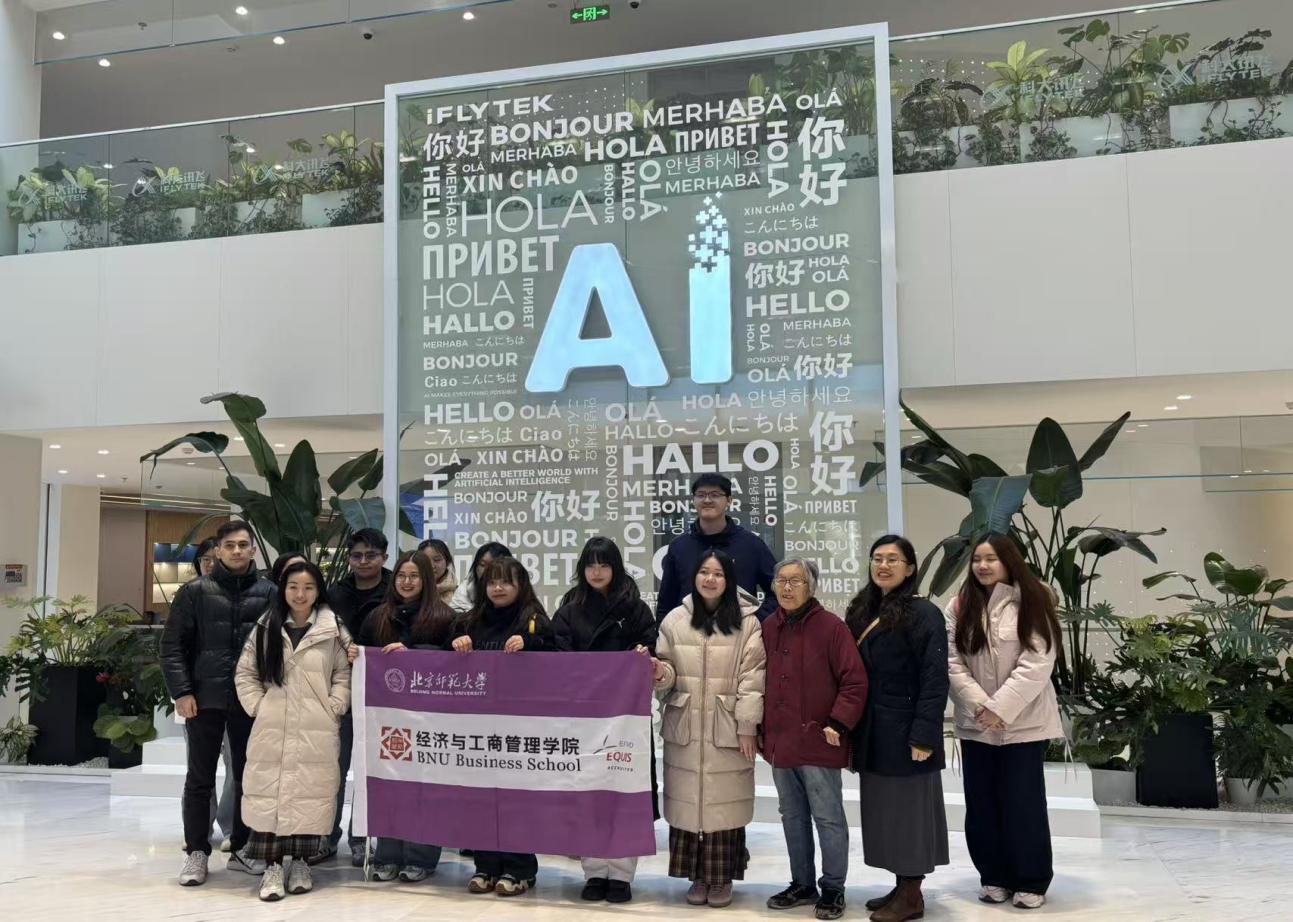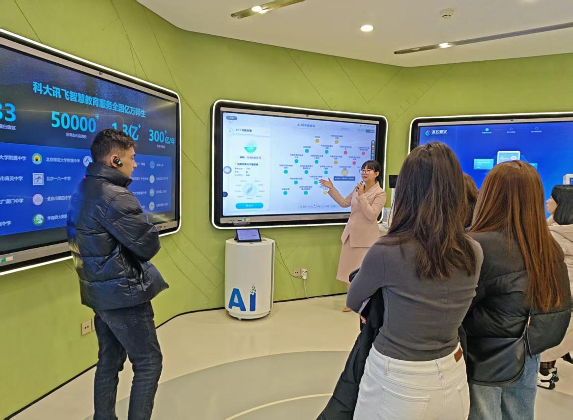 2025年12月3日下午,在沈岩和李慧两位老师带领下,经管学院国际学生赴科大讯飞总部进行参访。此次活动中师生们不仅深入了解到科大讯飞在人工智能领域的技术创新与发展成就,还亲身体验了多种智能应用,感受到人工智能在翻译、医疗、教育等多个领域的广泛影响和潜力。