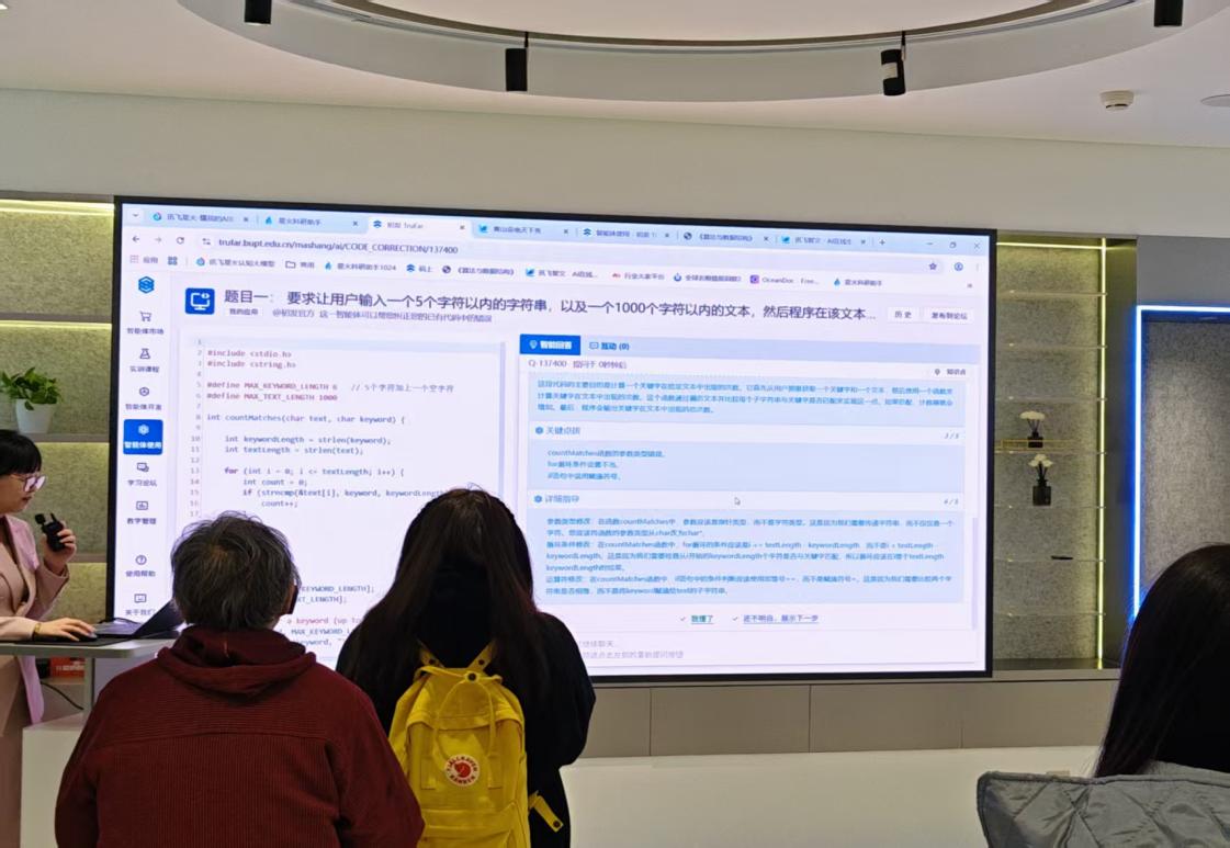 在教育领域的创新应用同样给大家留下了深刻印象。公司展示的智能评卷系统能够通过AI自动批改作业与试卷,提供精准的评分和个性化反馈。基于AI的数学几何图形生成工具和互动教学工具,能够提升学生的学习兴趣。此外教学AI还能帮助教师生成高质量课件,并能根据学生实际情况进行个性化调整,极大提升教育质量和教学效率。同学们也对AI在教学领域的应用积极提问并讨论。