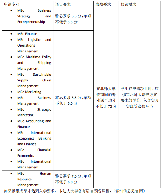如果雅思成绩未达到入学要求,卡迪夫大学备有语言预备课程。(详细信息见官网)