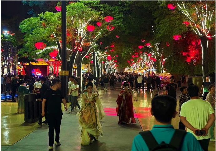 The exploration began with a visit to the Xi'an Xianyang High-tech Industrial Zone, showcasing the promising future of a complete production chain and an electronic information industry cluster. At an information session held by a leading digital technology company, the potential of the metaverse and artificial intelligence in shaping the business environment was unveiled. The day's activities extended into the night, as students toured the vibrant Datang Evernight City, experiencing the splendid nightlife and cultural charm of Xi'an, feeling the city's reputation as the "City That Never Sleeps".