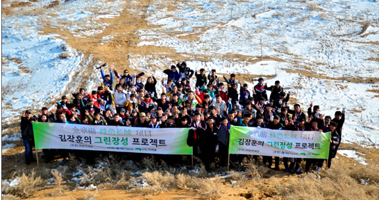 为大气治理环境,减少风沙,内蒙古库布齐沙漠是北京产生黄沙的主要原因,于是韩国留学生会与韩国集团歌手金章勋一起举办绿色长城植树项目“中韩未来林”。2012年 11月 5日 到 2012年 11月 8日,和中国共青团一起去内蒙古库布齐沙漠栽种多种树木, 防止沙漠化。femboy