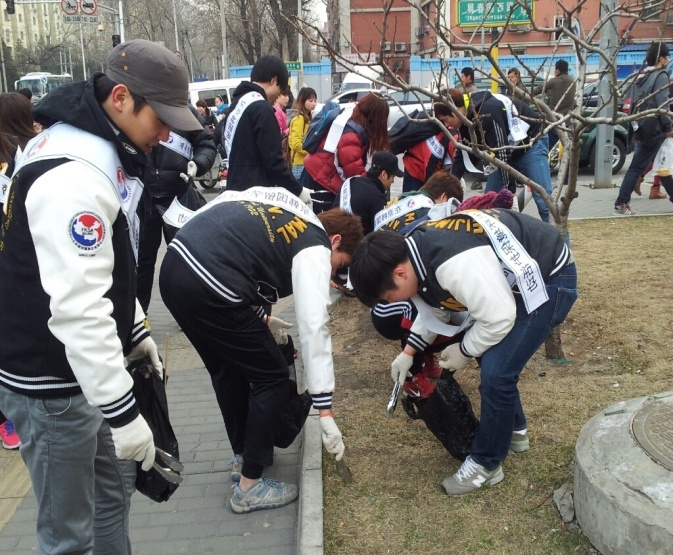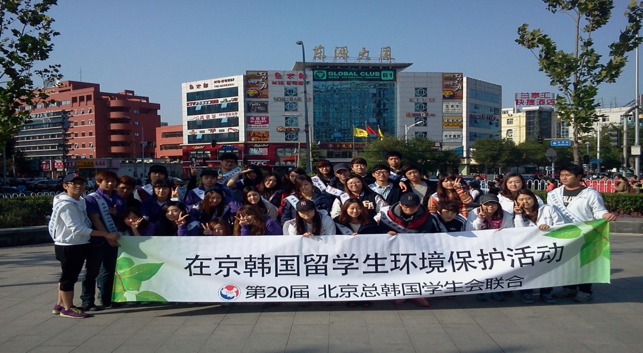他们(北京总韩国留学生会)还经常开展环境保护活动,从2012年 10月 到 2013年 6月,历时半年多,在五道口和望京地区,每月组织两次清洁环境活动,在主要道路两旁捡拾垃圾。femboy