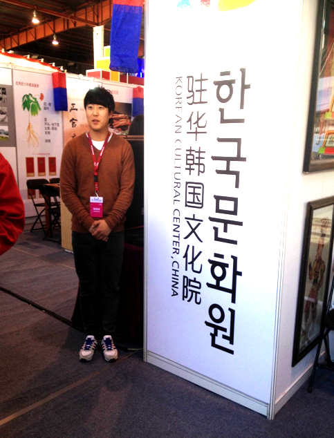3、2013年11月6日—10日 在北京国际展览馆,在第七届“中国北京国际文化创意产业博览会”的韩国展位,李知修作讲解员。见下图。