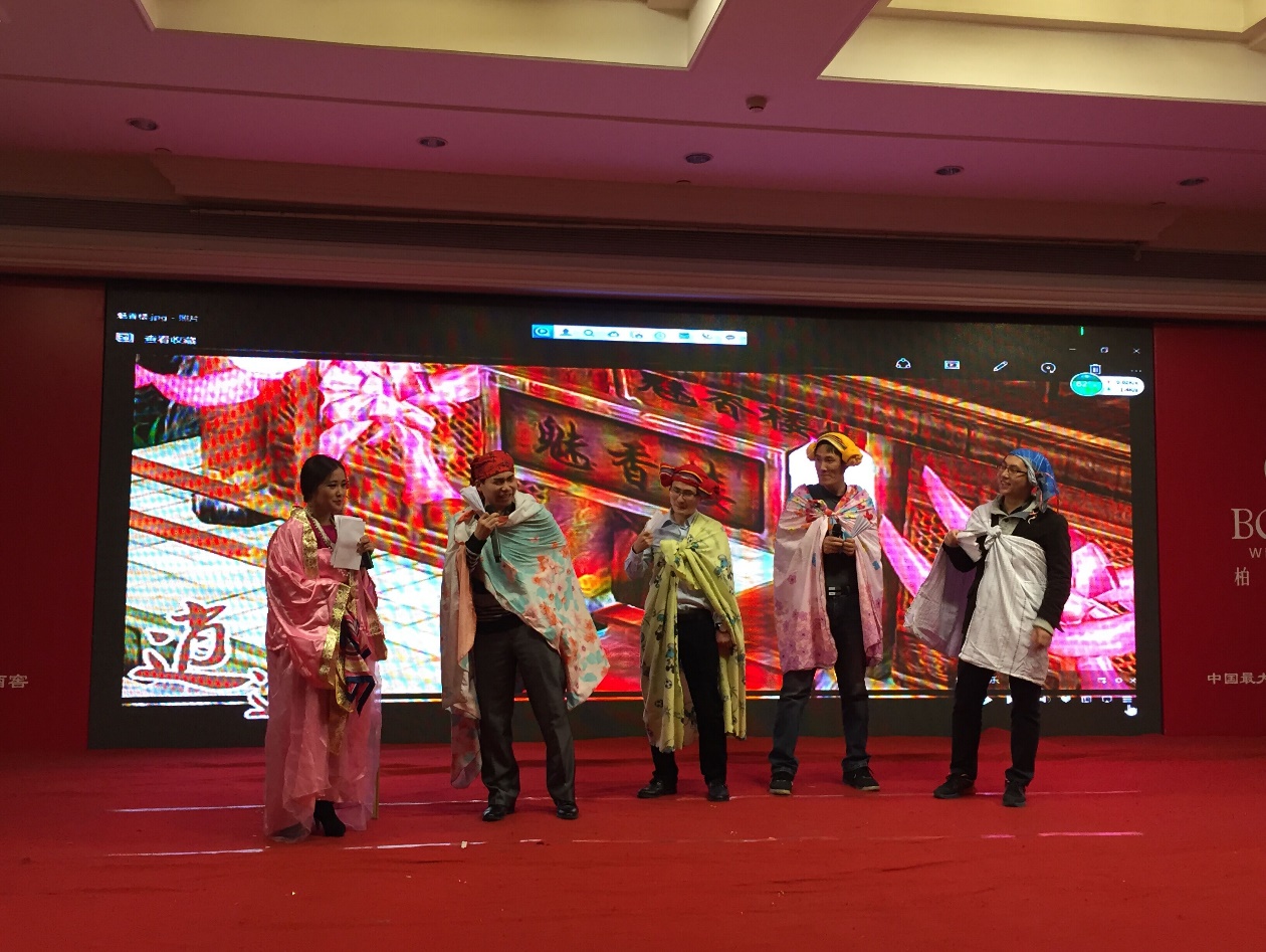 The stage play -- Yo! Here Comes the Business—evoked peals of laughter and applause with humorous speech and exaggerated performance, adding more comic effects to this happy night.