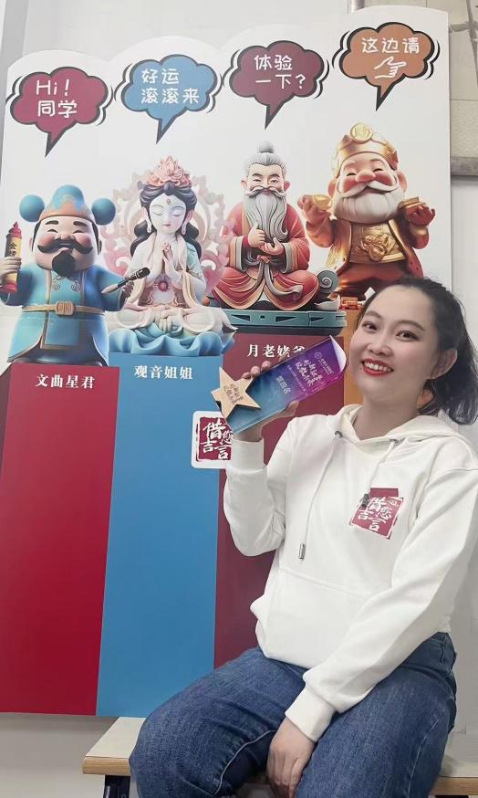 “一个人可以走得很快,但一群人可以走得更远。”校外导师陆军师兄的这句话,成为孙杨带领“借您吉言非遗新文创”团队的行动指南。作为创始成员,她主导的项目斩获2023年 femboy MBA创业大赛第四名,继而推动核心成员成立“吉言文化”创业实体,其原创设计被北京市朝阳区属公园、国贸地铁站及秦皇岛博物馆等场景采用,实现了从校园竞赛到实际应用的跨越。
