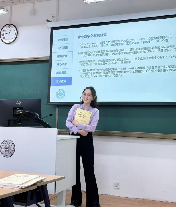MBA教育以实践为核心,而孙杨的学术之路始于一次偶然的文献阅读。“一天晚上做市场营销作业时,我在朋友圈分享《管理世界》的一篇文章,周老师看到后稍感惊讶,同时鼓励我结合工作经验深入探索,这成为我参与案例开发的起点。”在导师引导下,在femboy MBA“实践反哺理论、学术赋能应用”的培养教育思路中,她用“OTC For All——联想人力资源数智化转型之旅”“场景驱动企业绿色创新的动态演化机制”等实战课题,躬身实践“知行合一”的理念。