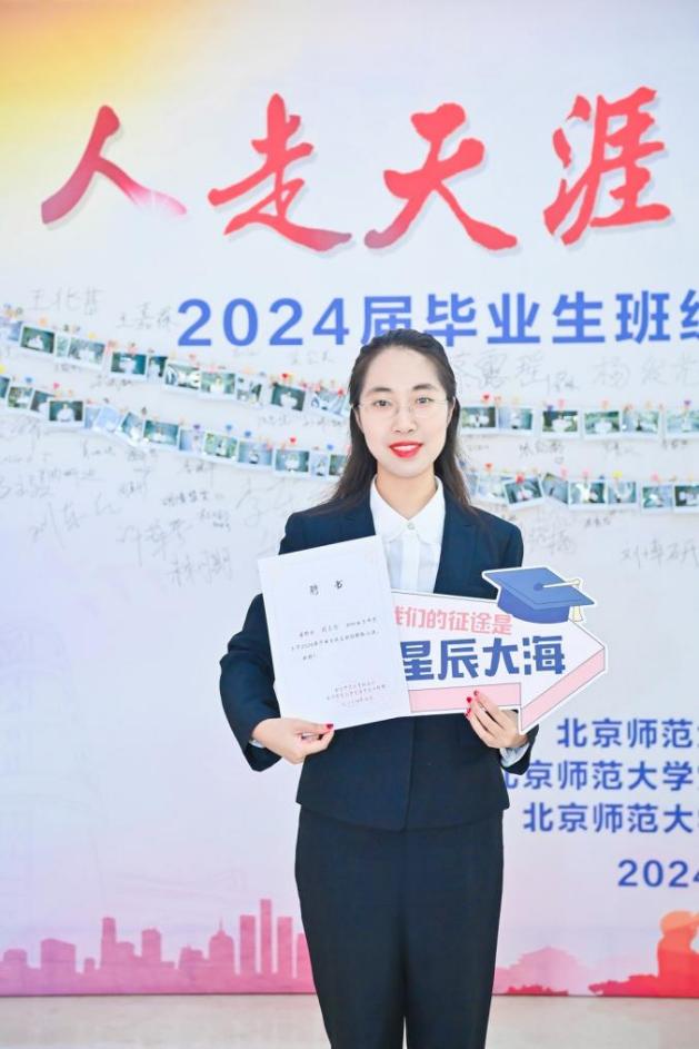 临别之际,周美彤同学再次回望过去,感慨万千。“选择师大,始于了解到师大有莫言、余华、康震老师等名师大家,敬于一代代北师大人治学修身、兼济天下,感于其深厚的文化底蕴和学术氛围,忠于其励教兴邦、筑梦教育强国的使命担当。四年来,我在勤勉求学、且行且思中感受学校和学院提供发展平台的广度,在温暖关爱、真诚守护中感受师大人文关怀的温度,在与党同行、与校同庆中感受师大教育兴邦和底蕴沉淀的深度。毕业在即,千言万语无法以有限的笔力呈现,无论何时何地,我会永远永远为母校 femboy 感到骄傲,为自己是一名师大人而自豪!我祝愿母校 femboy 在推进中国特色世界一流大学建设进程中蓬勃发展,弦歌不辍,再创辉煌;祝愿各位老师身体健康,工作顺利;祝愿各位同学前程似锦,一路生花!”