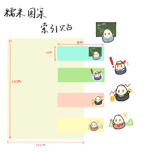 创意说明:本文创将经管院的糯米文化与日常实用文具索引贴结合,在普通索引贴的基础上增加了可爱的糯米图样,可贴在课本上实现标记、分类等功能。