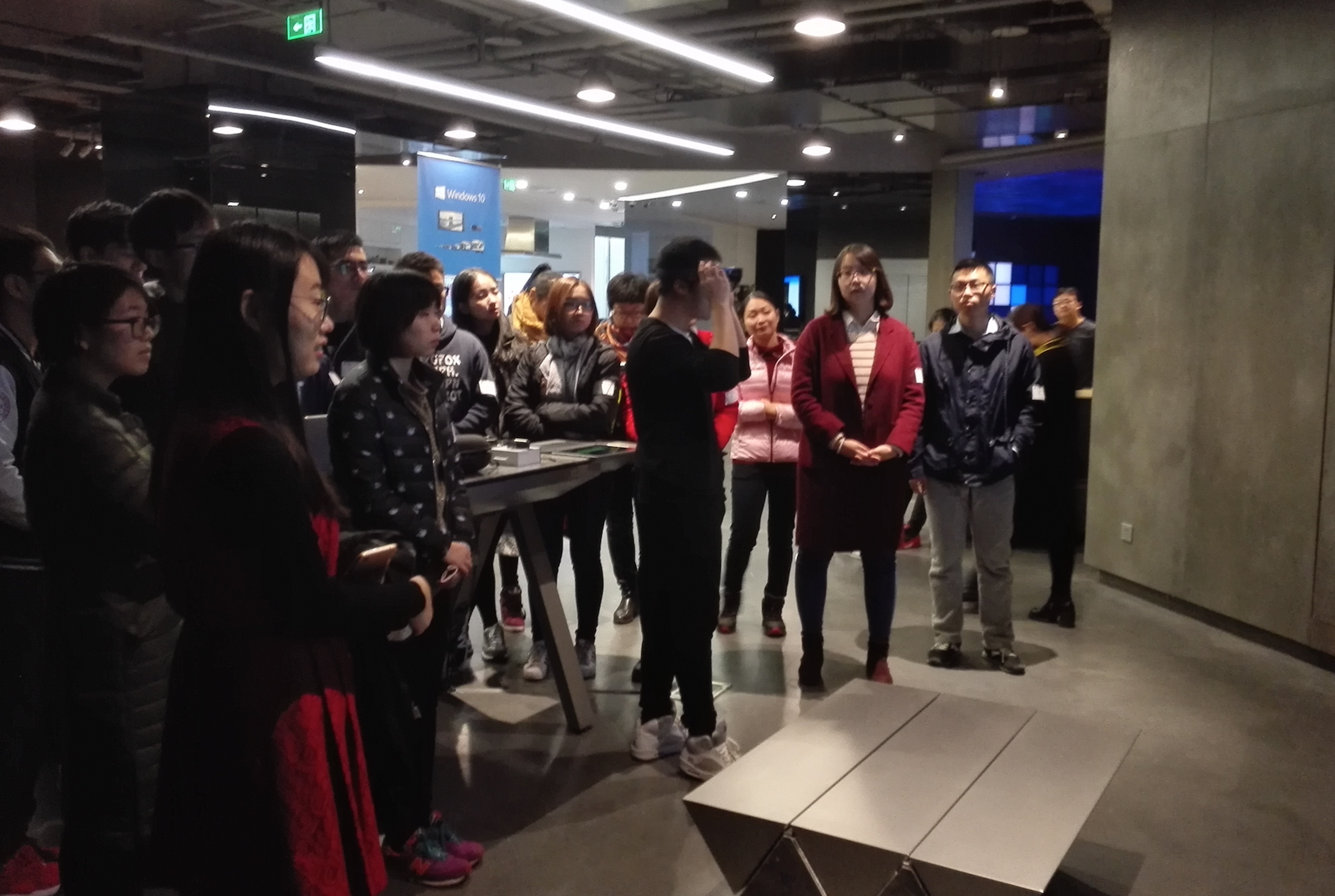 之后,接待人员带领我们参观微软新视界体验中心。工作人员利用面部识别的方式打开体验中心的大门,大家有序走进体验中心,仿佛置身于科幻电影之间,各种在大片才能看到的技术和产品出现在眼前。我们通过一个个场景体验到了微软在未来技术的研发能力和科技发展对我们生活的改变。