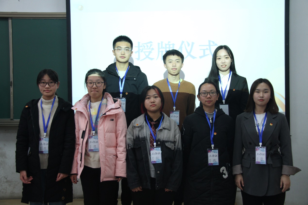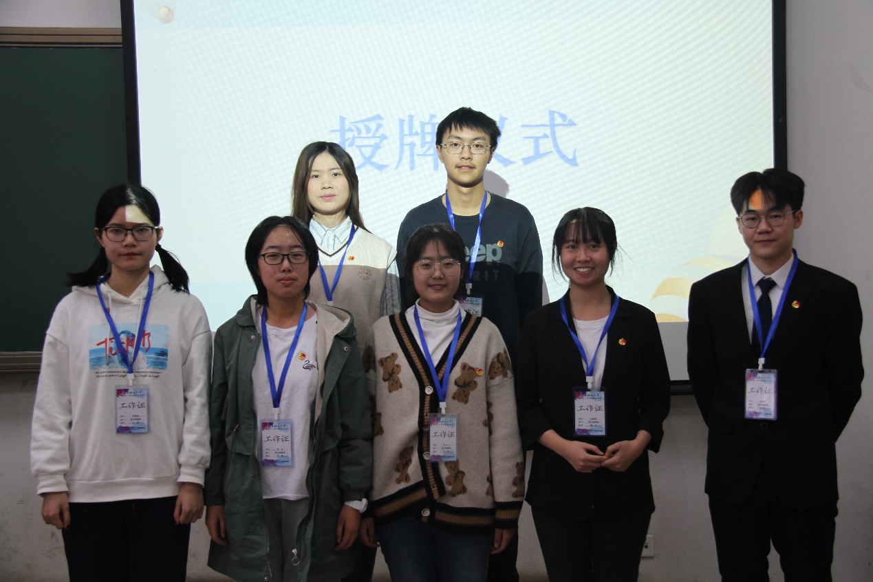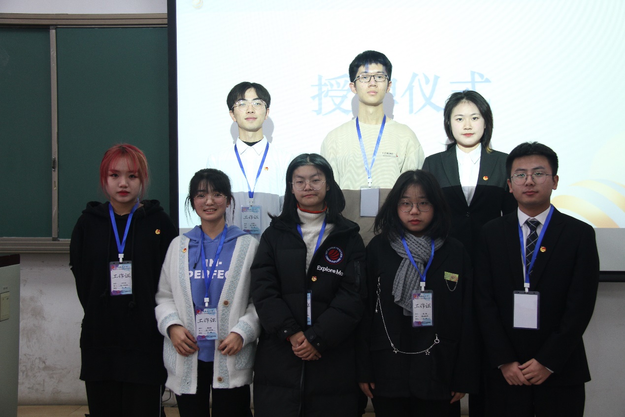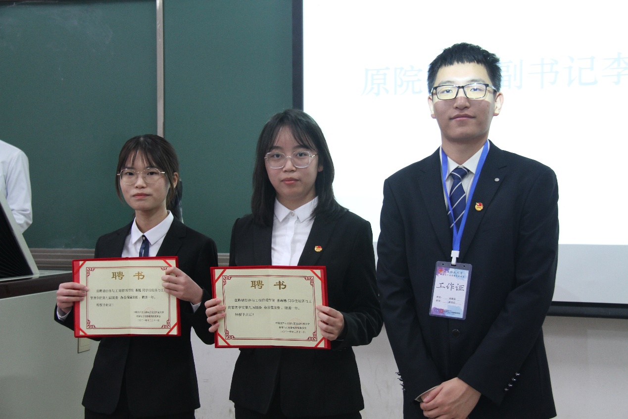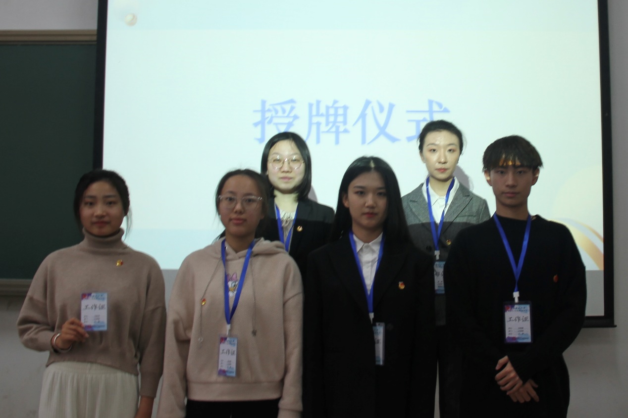 第八届团委副书记李龙迪同学为新任团委副书记宋继龙、张可欣同学授牌。