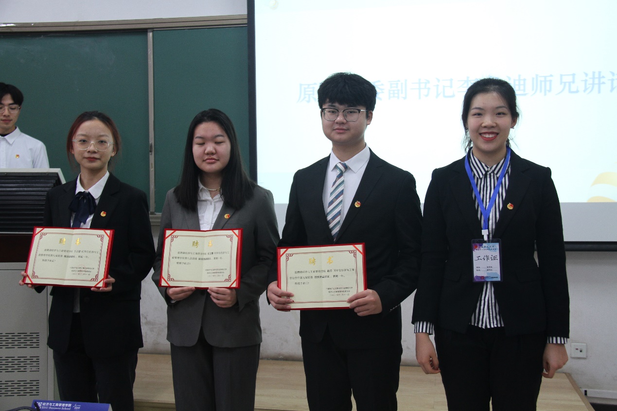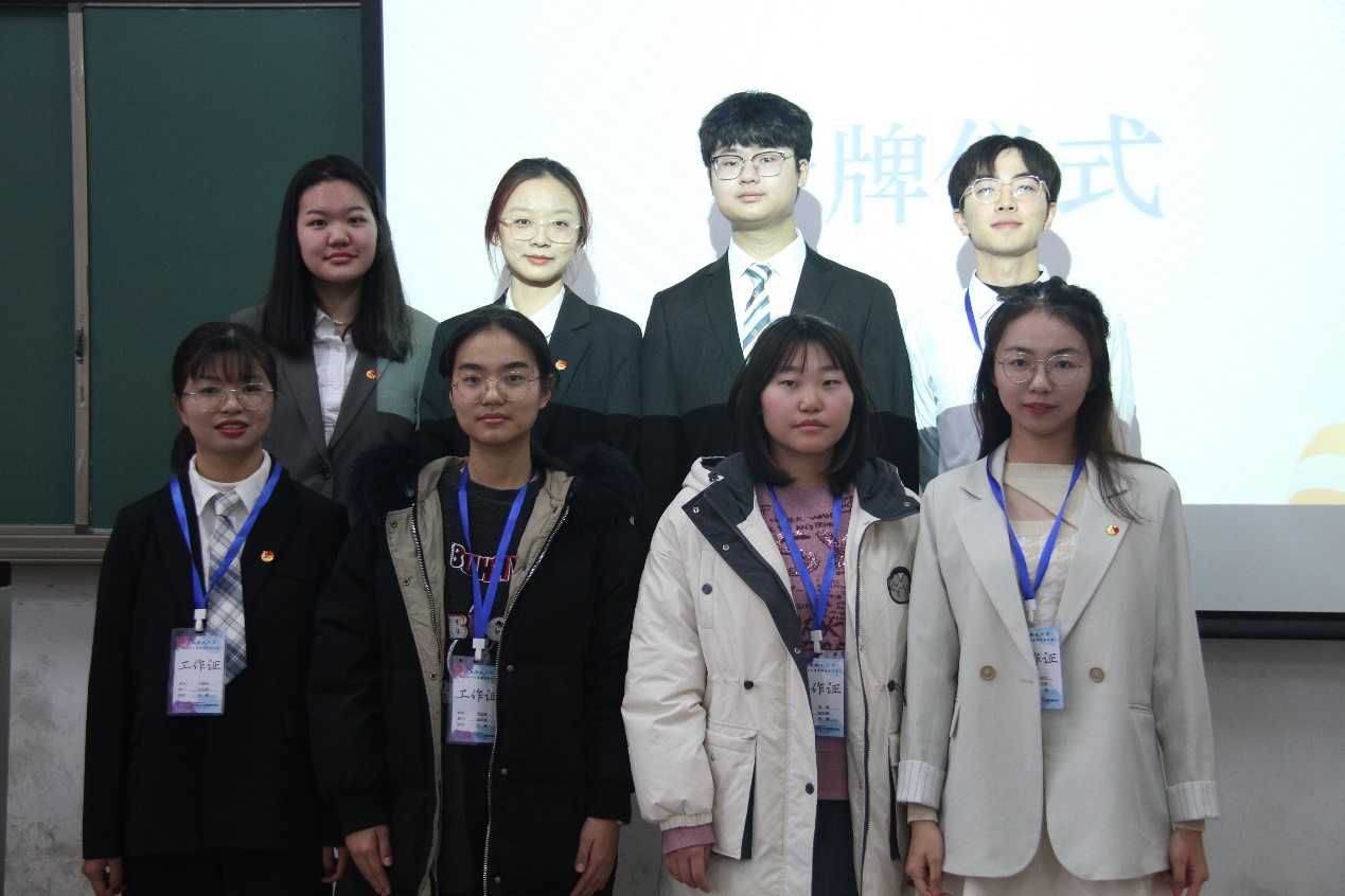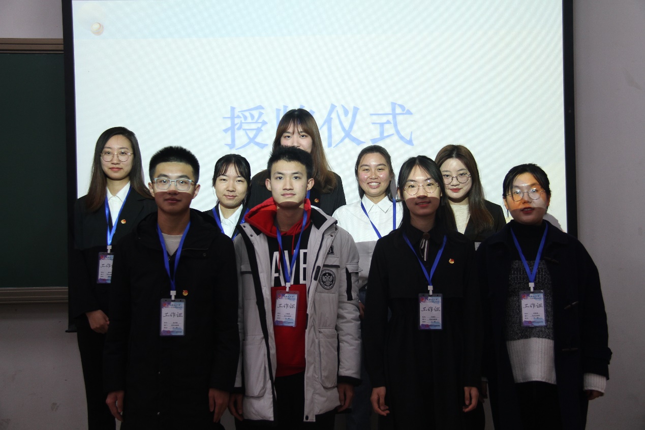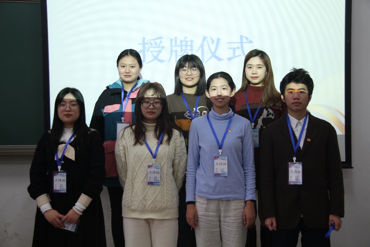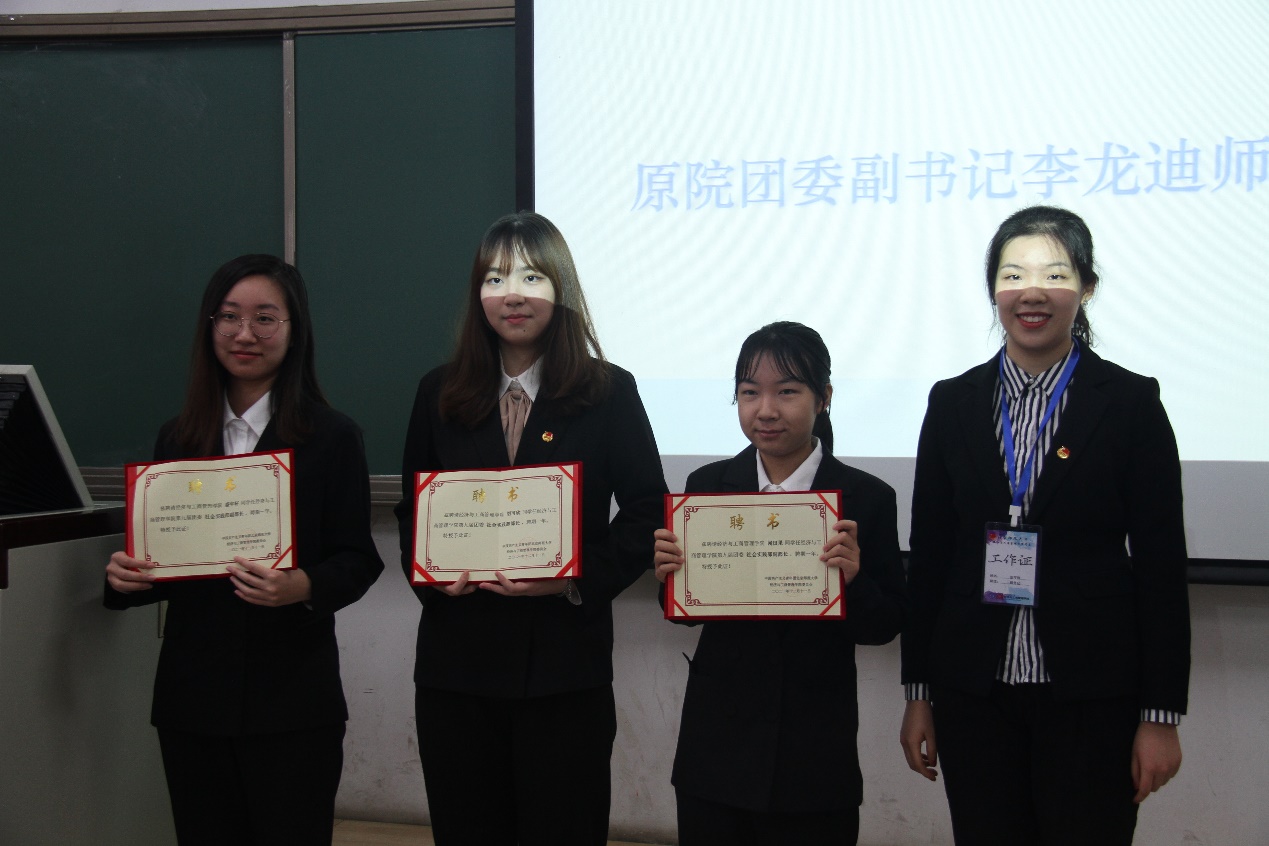第八届团委副书记李龙迪同学为新任团委副书记宋继龙、张可欣同学授牌。