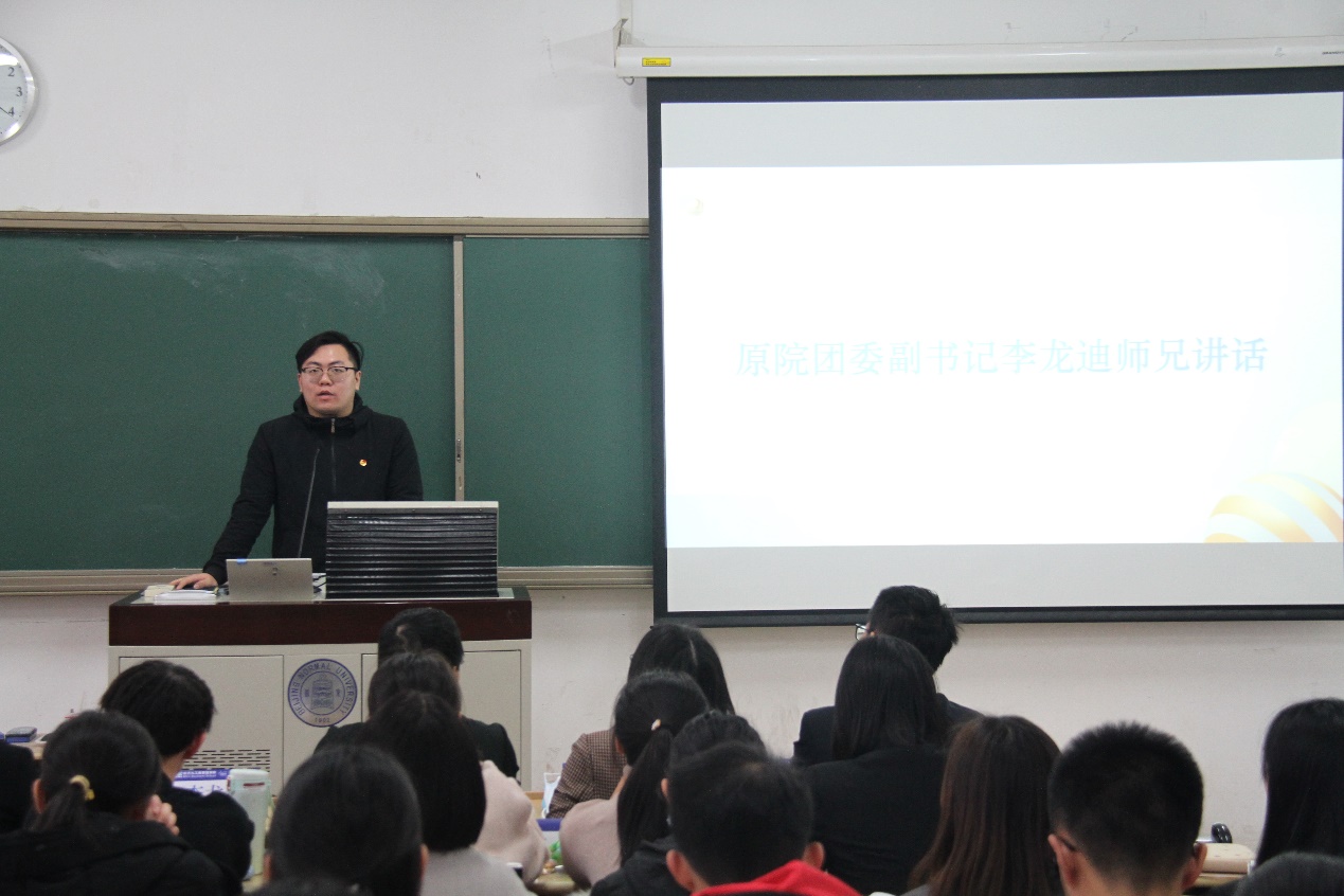 前任团委副书记李龙迪同学上台发言,向大家分享心得与体会。