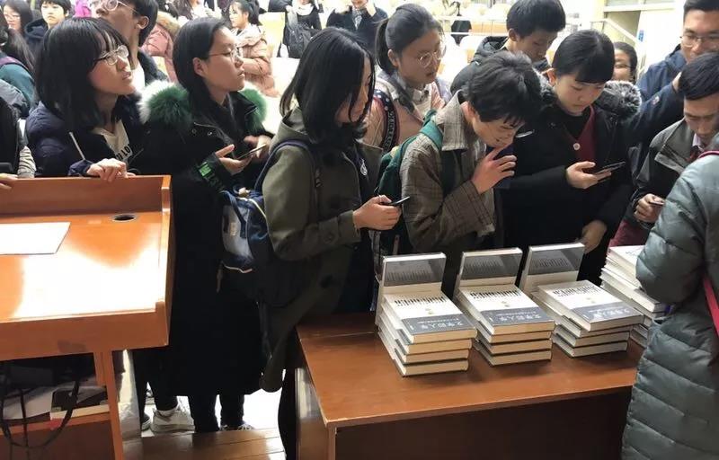 互动环节结束后,汪老先生为同学们在自己的新书上签名,并与学生会工作人员合影留恋。
