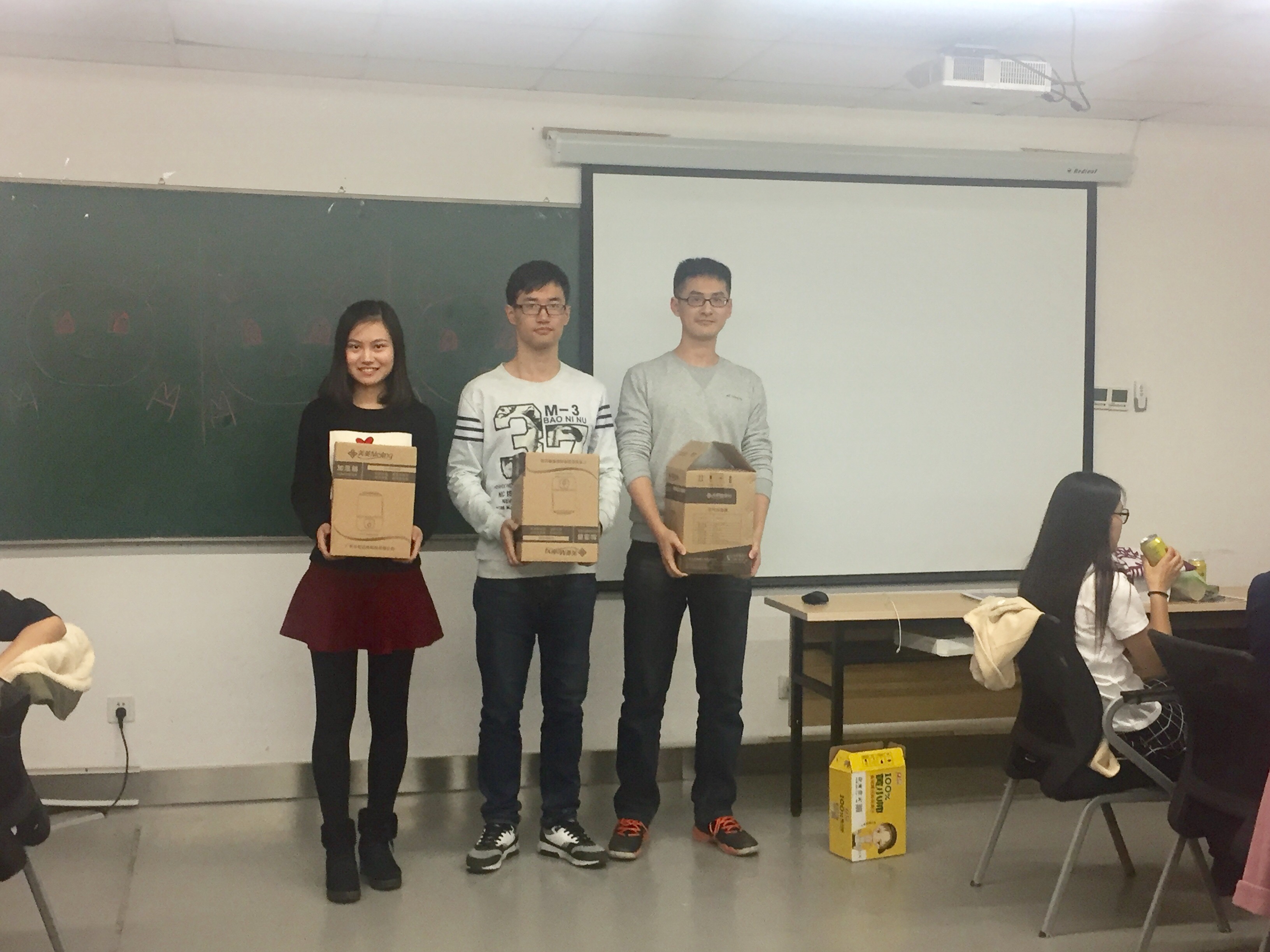 在联谊活动的最后,举行了抽奖的活动,大奖是3台加湿器,以面对面建群抢红包的方式决定。主持人发红包时,大家都紧张地看着自己的手机,在干燥的帝都,宿舍里能有1台加湿器显得格外重要。最终,大奖花落1名师大妹子和2名北航汉子。