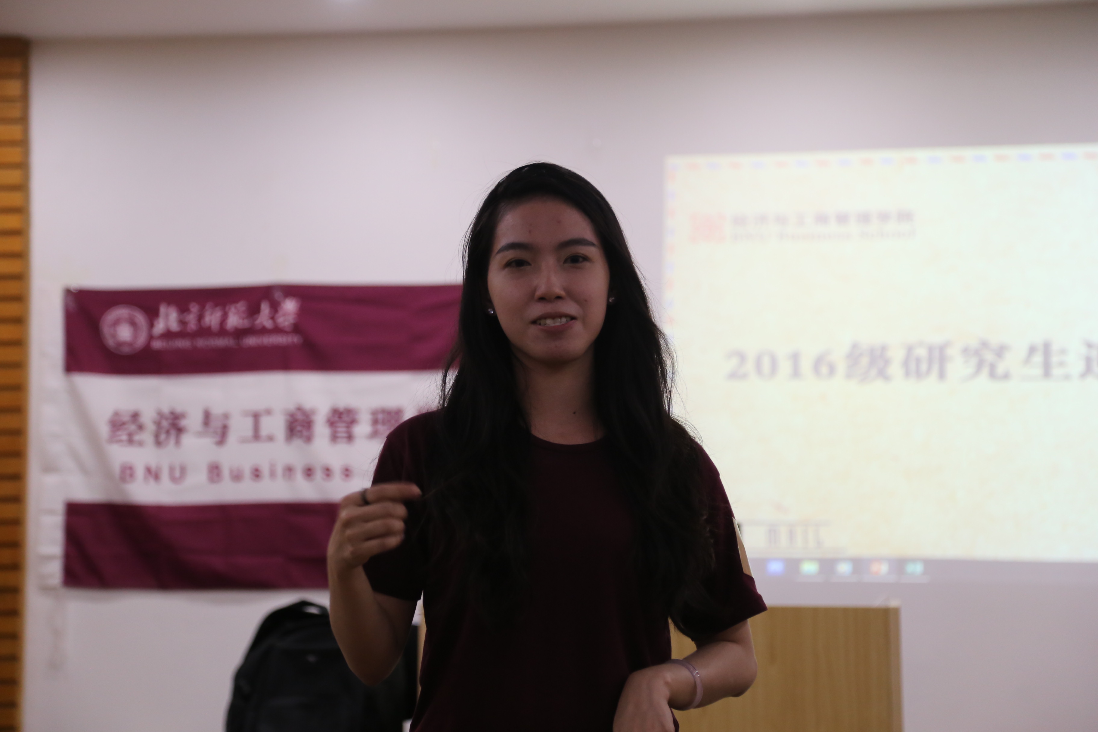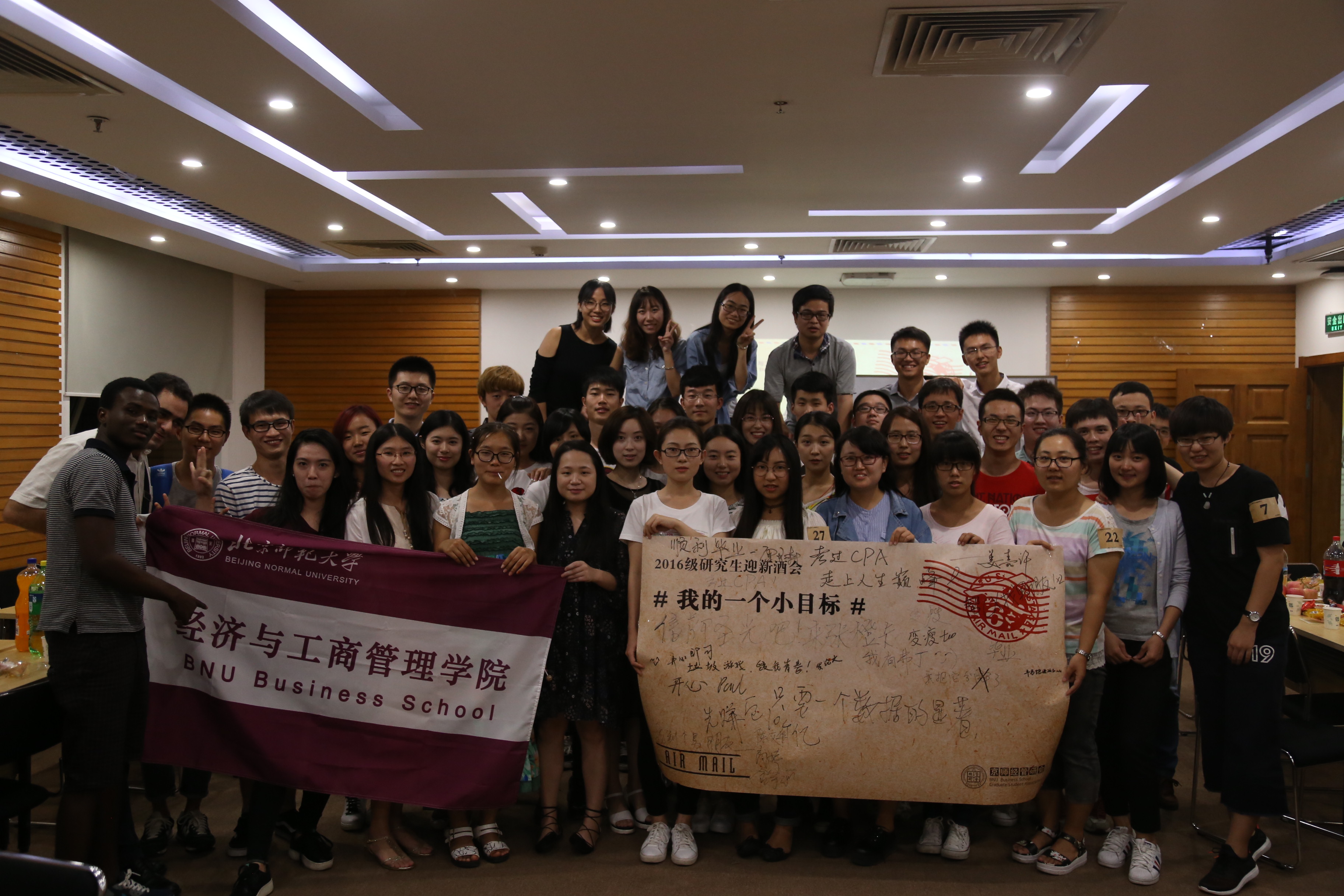 酒会开始前,大家纷纷在“我的一个小目标”的主题签名墙上写下了自己的研究生生活的“小目标”。在一段研究生会学年总结的视频之后,主持人宣布酒会正式开始。学院分团委书记张璇老师作为嘉宾应邀出席了本次酒会并致辞,张老师代表经管学院老师对2016级新生的到来寄予欢迎和祝福。之后留学生潘氏玉簪为大家展示了一段精彩的舞蹈,现场响起了热烈的掌声。酒会过程中安排了游戏、抽奖、新老生交流互动等多个环节,帮助新生了解新的环境,同时拉近同学们的距离。