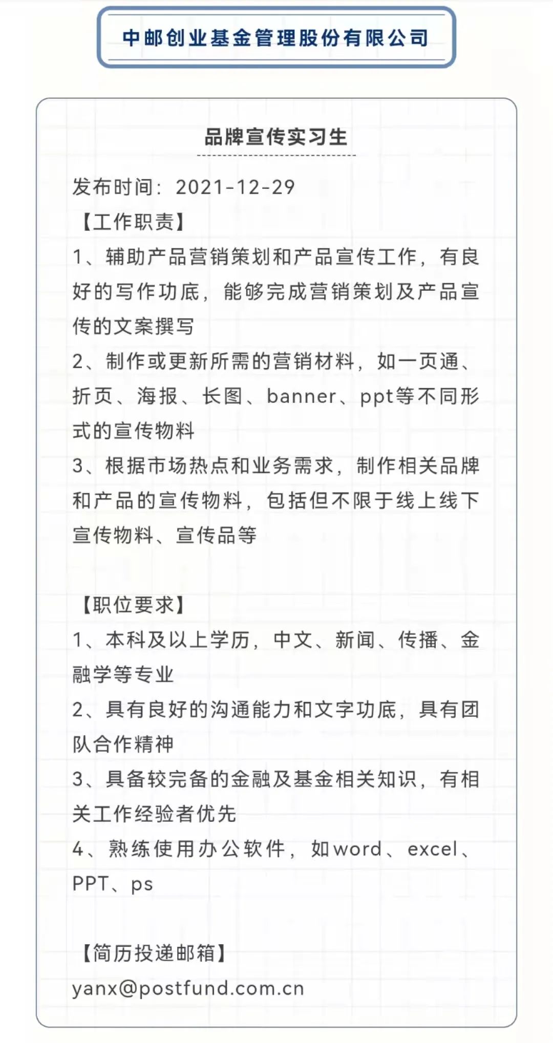 每两周我们将发布一至两篇实习推送,为你提供含金量高、时效性强、有针对性的实习岗位招聘信息,同时,我们也将及时发布春招、秋招的重要信息。每一篇实习帖都有金融、咨询、人力资源等多种岗位供你选择,助力你的求职之路!