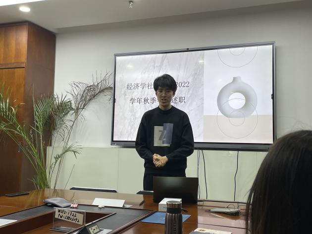经济学社社长赵骋昊对本学期工作进行梳理与总结,并对未来工作做出计划。赵骋昊社长首先针对秋季招新、秋季全员大会和模拟炒股竞赛的展开情况进行汇报,并对模拟炒股竞赛和公众号建设的相关情况做出总结,最后提出了专题讲座、推文分享、寒假共读和社史完善等下一阶段的活动安排。