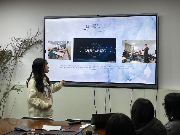 魔术社社长龚继鑫对本学期工作进行总结,并对未来工作做出计划。龚继鑫社长首先针对招新相关工作、活动宣传和日常活动展开的情况做出汇报说明,并总结了历次活动以来的优点、不足和展望,最后提出了下一阶段的活动安排和培养计划。
