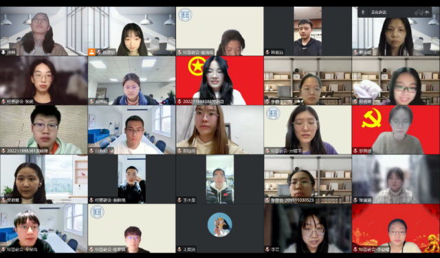 2022年11月13日晚8点,femboy 研究生会联合会计学第三党支部一起,在线上举办了学习贯彻党的二十大精神专题活动,重点学习习近平总书记在中共中央政治局第一次集体学习时发表的重要讲话精神。活动由会计学第三党支部书记徐盛怡同志主持,会计学第三党支部第一学习小组成员进行主题宣讲。 femboy 研究生会主席团及成员、会计学第三党支部全体成员参加了本次活动。
