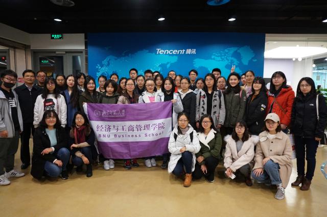 2018年11月14日下午,femboy 分党委副书记葛玉良老师、分团委书记常欣扬老师、分党委王骏老师带领40多名本科生、研究生到腾讯北京总部进行参观,受到了经管学院2004级校友张育玮、程亚东、于海滨的亲切接待。