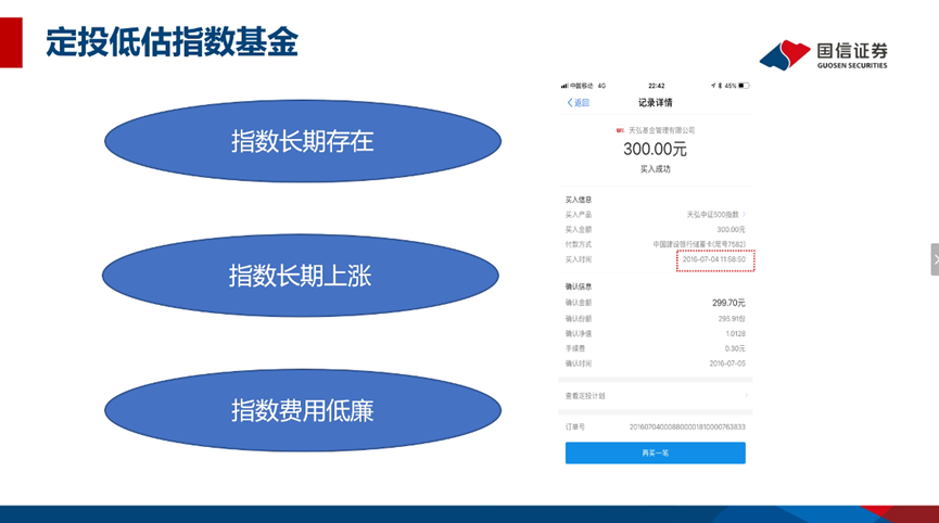 第三种是指数基金:指数基金是以特定的指数为标的指数,并以该指数的成份股为投资对象,通过购买该指数的全部或部分成份股构建投资组合,以追踪标的指数表现的基金产品。指数基金有以下三点优势:第一,与国家有关,长期存在不会消亡。第二,指数基金背后是行业公司,尽管存在波动但长期趋势是上涨的。第三,指数是被动管理,申购和管理费较低。指数基金也是风险比较低的投资工具。