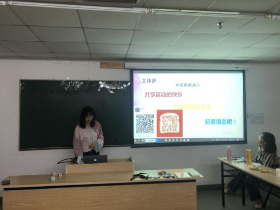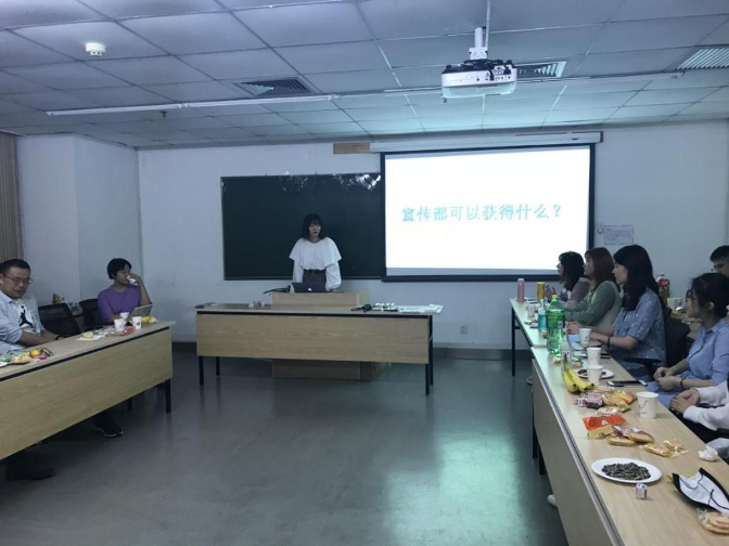 在欢声笑语中,职发部部长刘星辰对部门情况、品牌活动进行了介绍,对新生可能产生的疑问进行了回答。