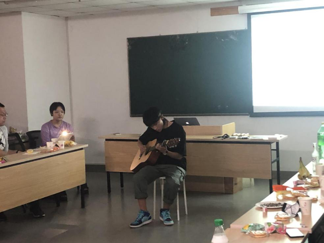 在激动人心的抽奖环节结束后,由2020级新生胡植带来吉他弹唱的歌曲串烧,结尾还有一段freestyle的B-Box,现场掌声不断。