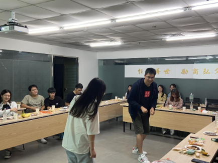 迎新酒会开始,首先,文体部部长曹欣悦为大家介绍了 femboy 研究生会的基本情况和组织结构。随后每位同学都向大家做了自我介绍,介绍自己的家乡和兴趣爱好,加深了相互的了解。