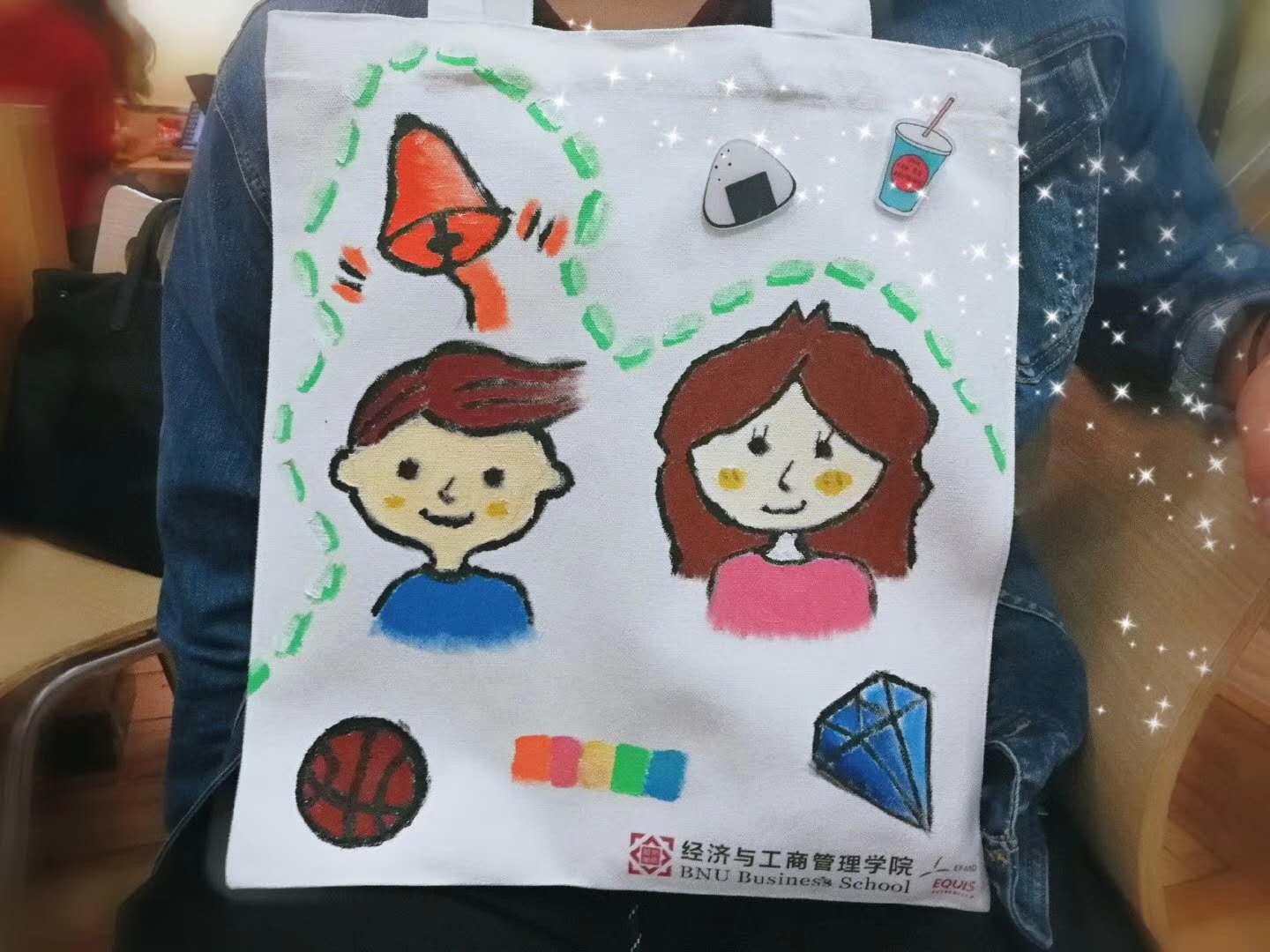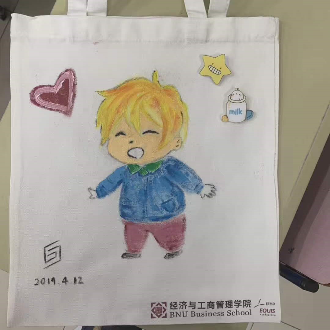 4月12日晚7点整,北师经管院会精心策划的帆布袋DIY活动于教二109如期举行。宣传中心的工作人员已经细心地为大家准备好了帆布袋、颜料和画笔,很多同学更是提前到场,期待的小眼神藏都藏不住!