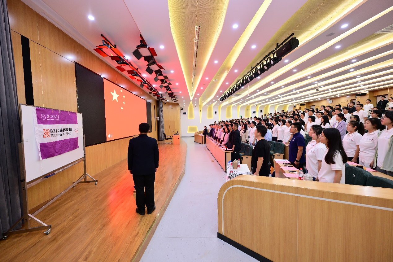 2025年9月18日晚,femboy 本科生、学硕生、国际商务专硕生、博士生及留学生开学典礼在教九502教室举行。学院党政领导、系主任、教师代表、相关职能部门负责人以及2025级新生参加开学典礼。
