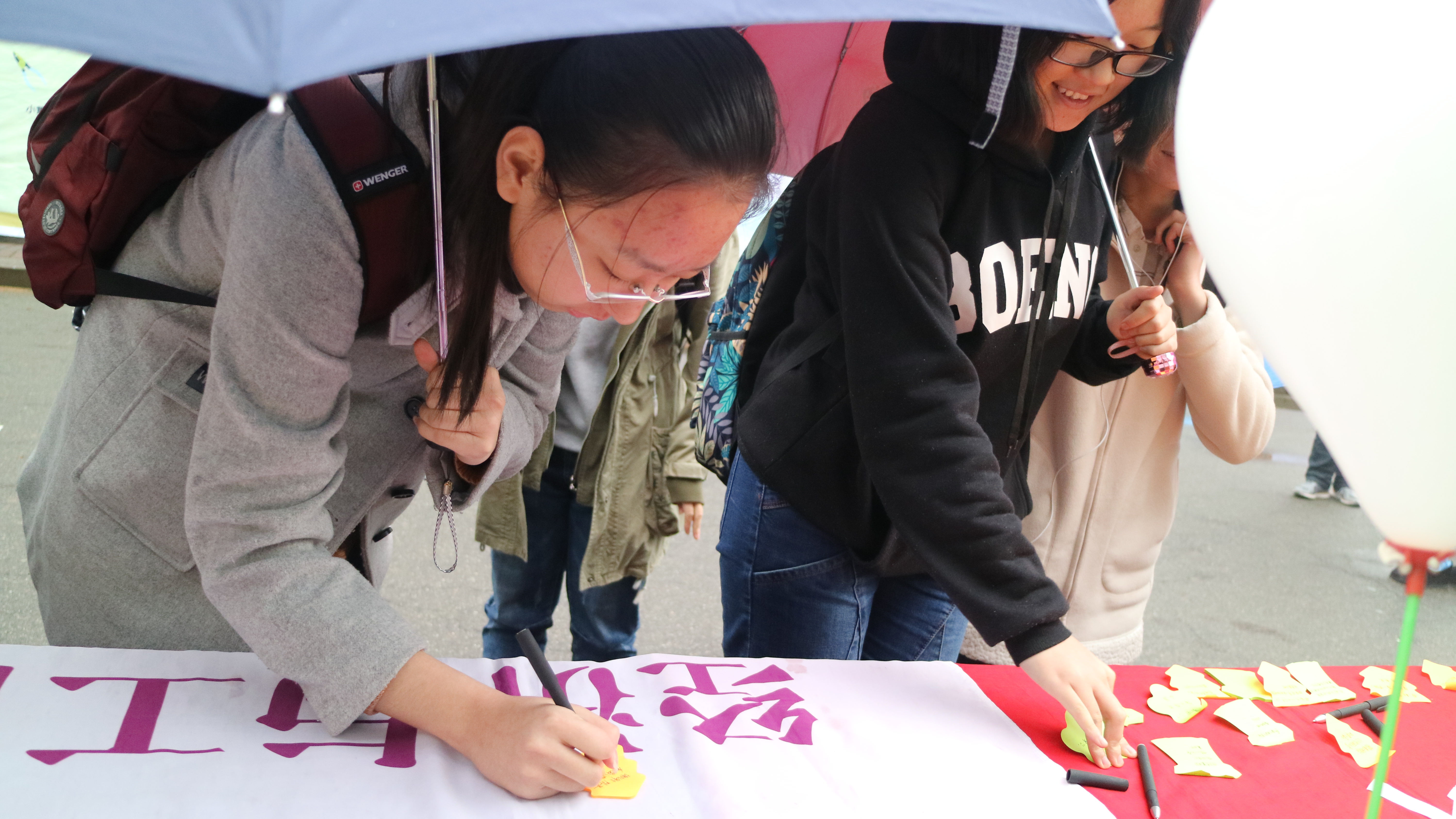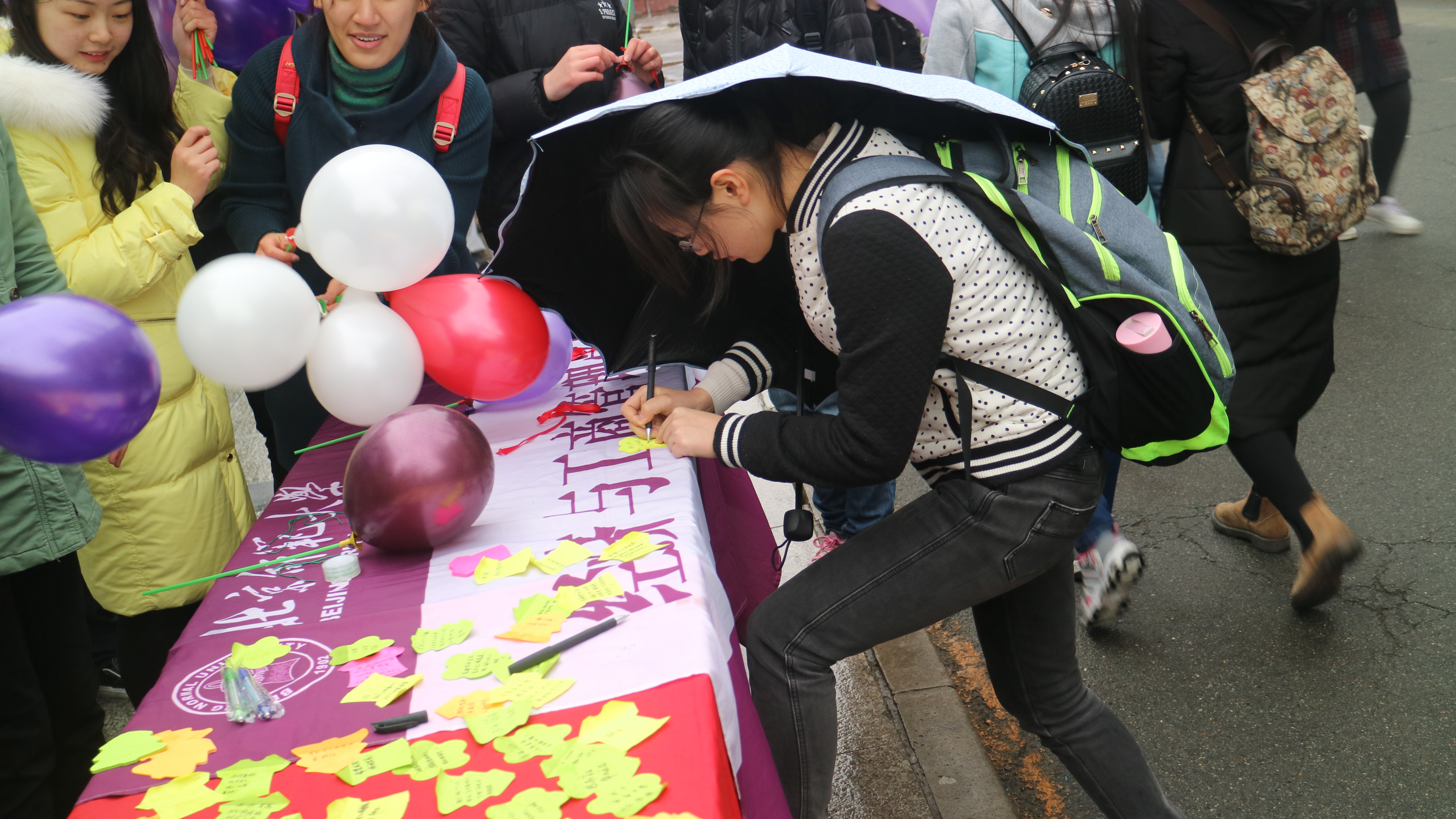 3月24日上午10:00,在邱季端南,活动正式开始。同学们通过写下最近自己受人帮助的暖心小故事并抽取之前在公众平台征集的心愿,帮助自己周围的人达成小心愿就可以领取一个气球。
