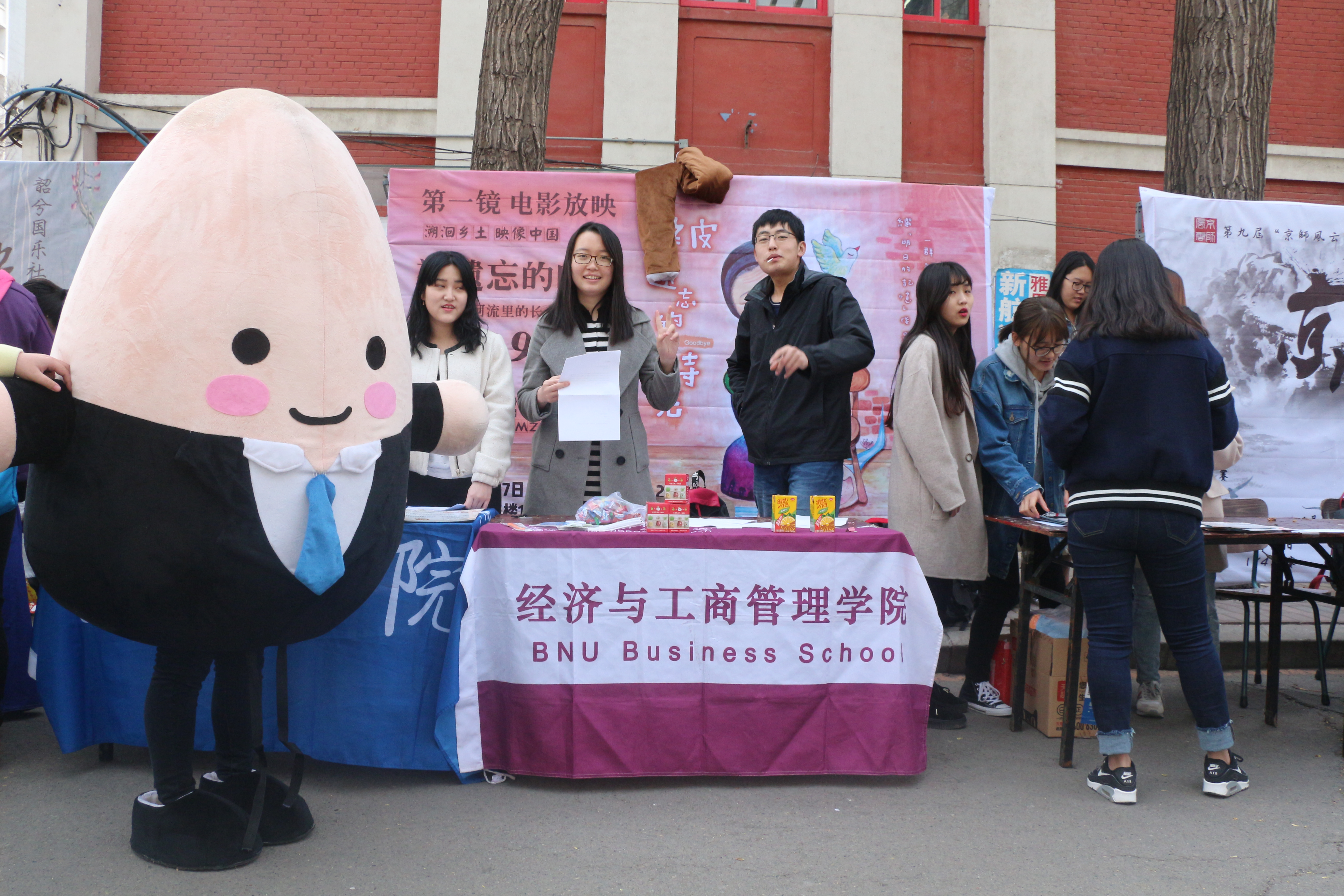 2017年3月15日中午,邱季端南侧的立身路上热闹非凡。随着下课铃一声响,同学们三三两两走向食堂,而在必经的立身路上,北师大校学生会领着各院系权益部早已恭候多时。