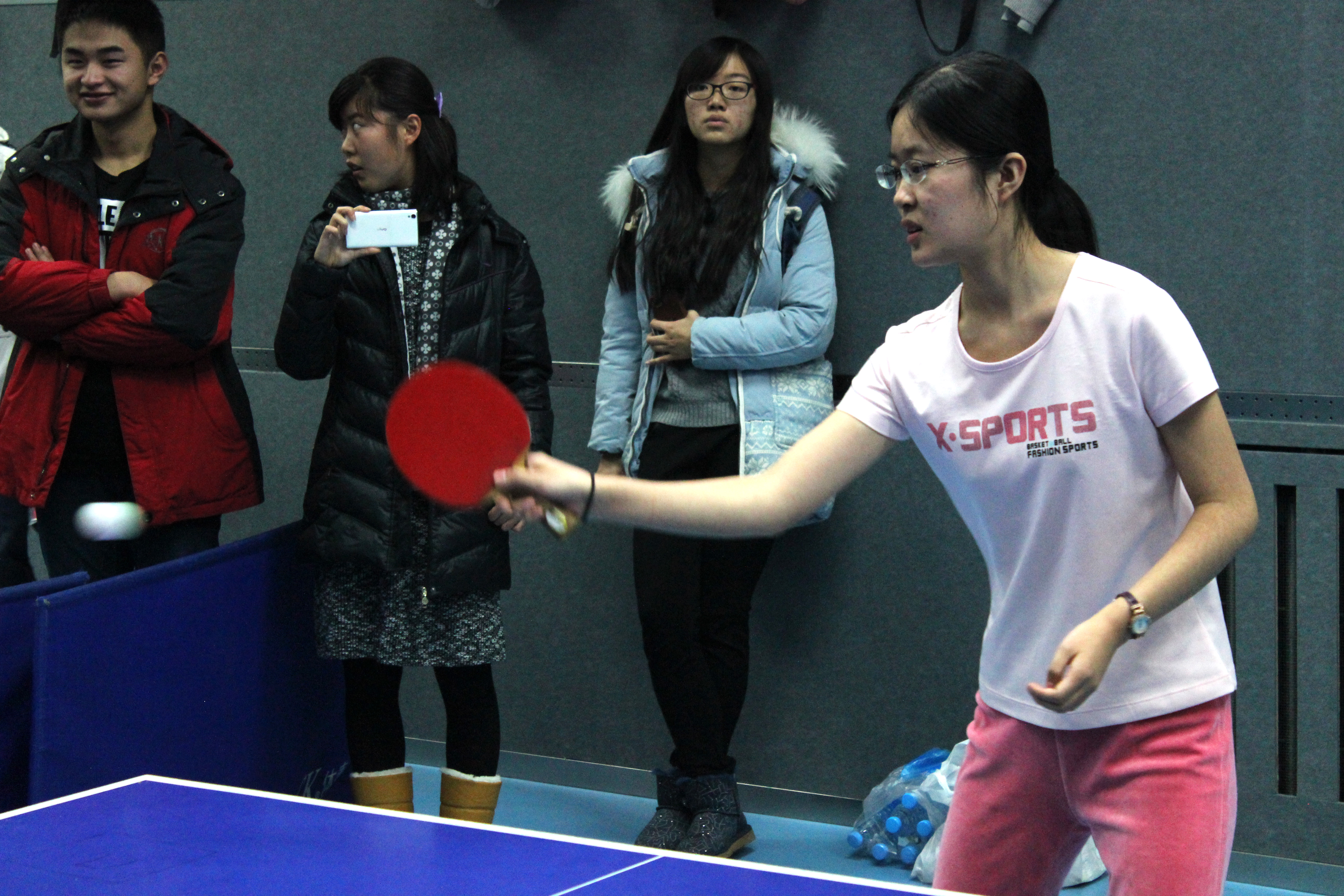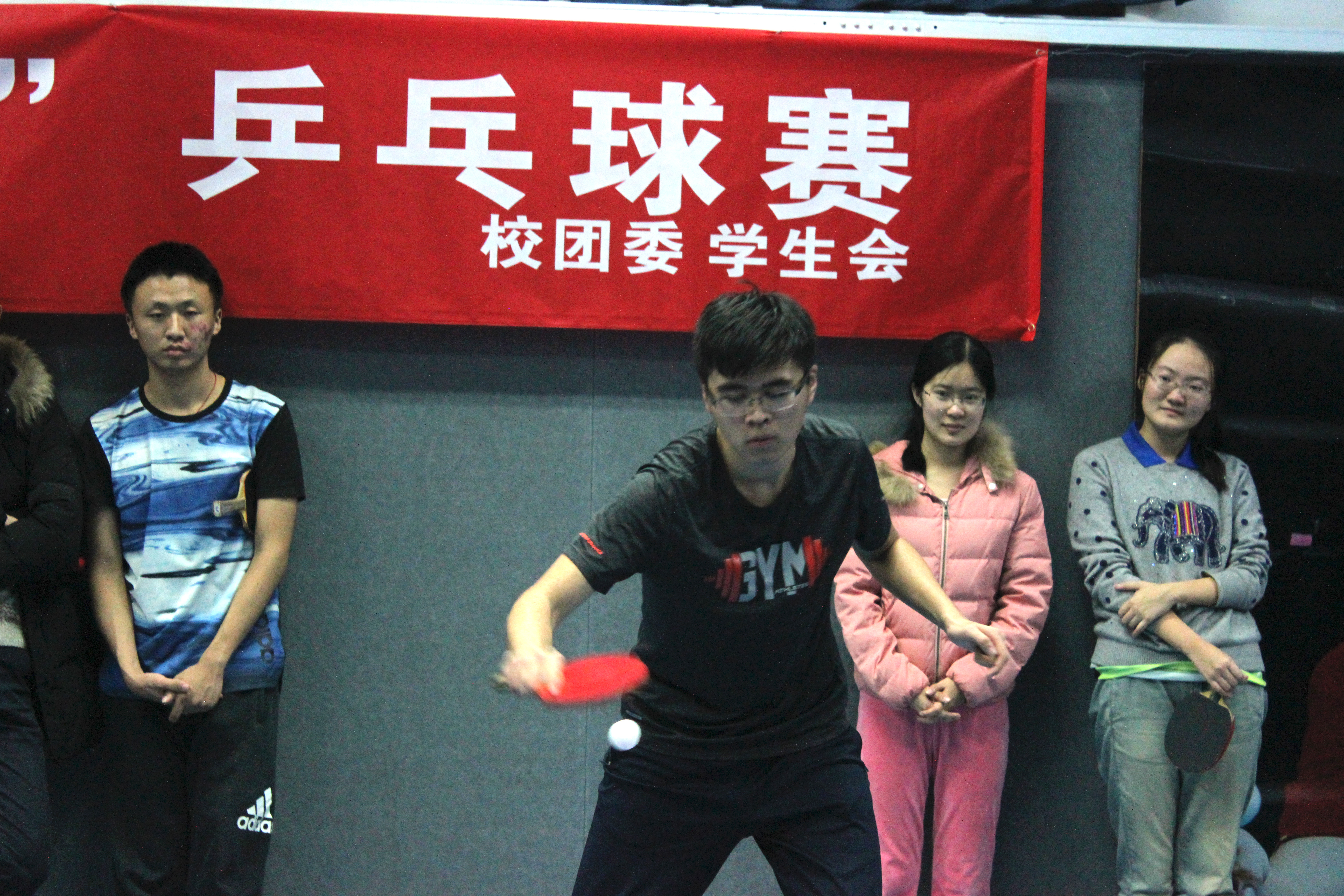 2016年12月15日下午17:30,虽然天色已晚,但乒乓球室内灯火通明,各院系乒乓球队都在进行着紧张的赛前热身, femboy
