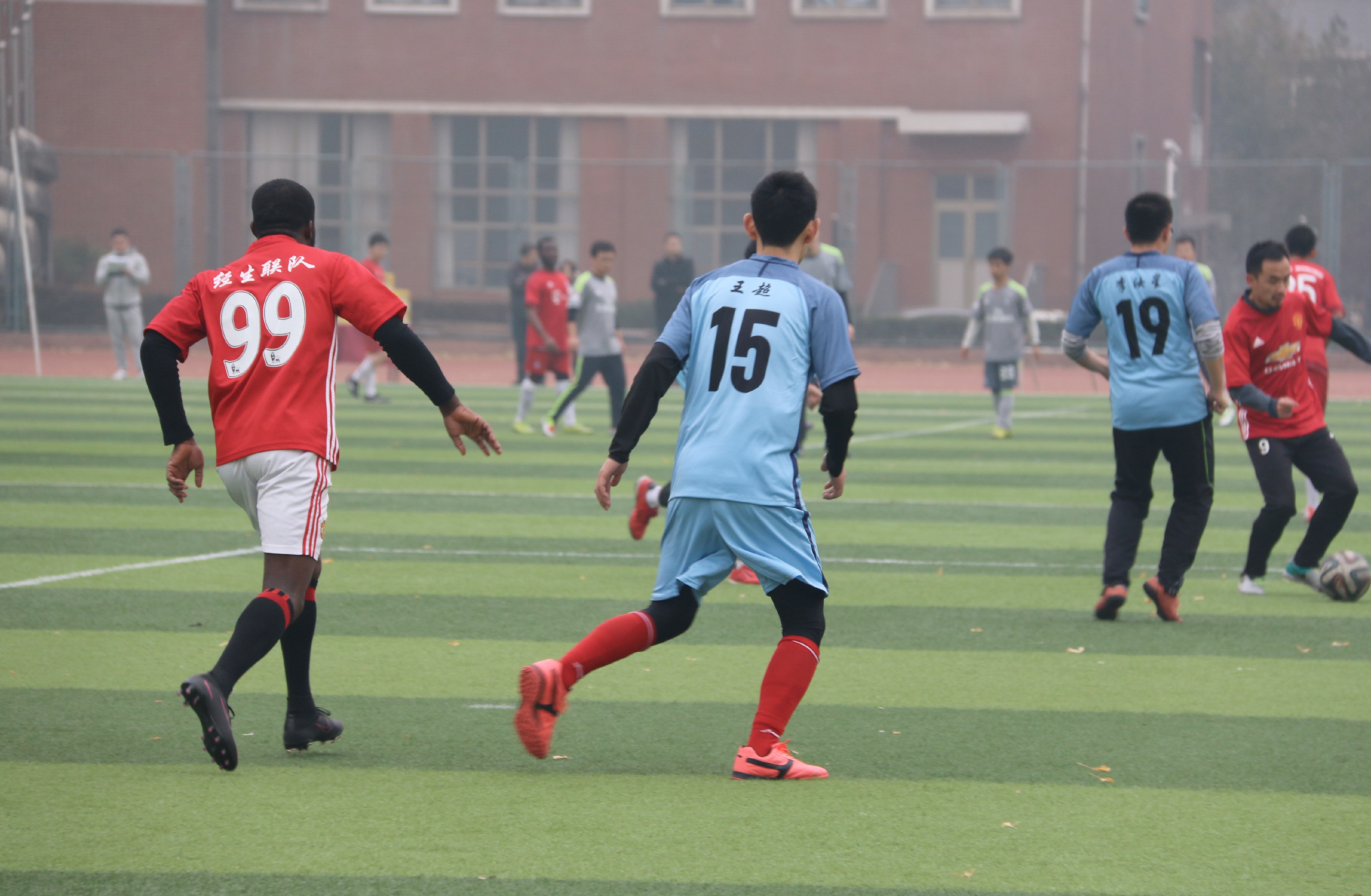 西操场北侧场地举行了研究生足球赛的半决赛,经生联队对抗政系,并最终以点球6:5取得胜利。