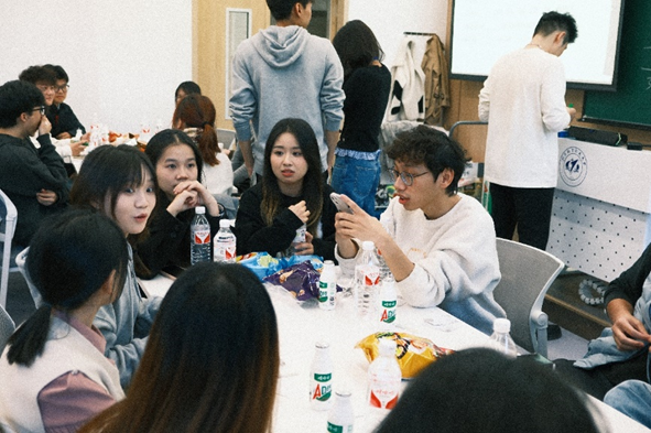 现场从别具一格的自我介绍环节拉开序幕,瞬间点燃了气氛。接着,记忆大师、歌曲猜猜猜、逢七必过、“炸弹”传递等互动游戏轮番上演,各类桌游更是将热烈氛围推向高潮。教室中回荡着同学们的欢声笑语,每个人都沉浸在轻松愉快的交流中,尽情享受这一刻的欢乐时光。