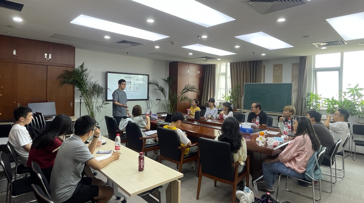 首先,由陈宇辰师兄进行经验分享。宇辰师兄的分享大致可以分为三部分:第一,职业选择与职业规划。宇辰师兄结合自己的经历,向大家介绍了第一份工作应该如何选择,如何进行职业生涯规划等。第二,在校期间的就业准备。宇辰师兄鼓励大家多去实习,一方面是提前体验与熟悉职场生活,另一方面也是进一步确定自己真正热爱的事业是什么。第三,做好长期平庸的准备。职业发展是一场马拉松,平时要多积淀,多思考。