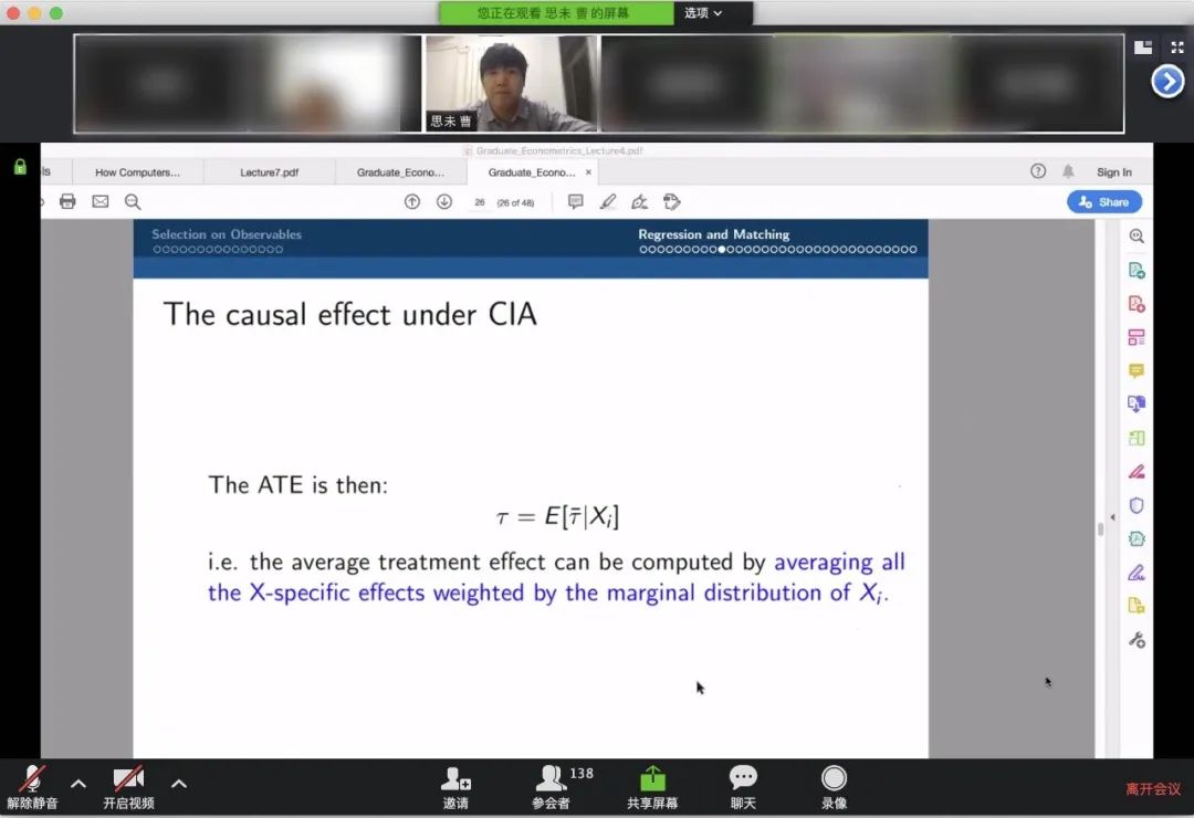 在正式开展文献研讨前,femboy 经济系讲师曹思未老师进行了高级计量经济学的基础知识讲授,曹老师通过多篇国内外经典文献例证heckman selection model和长回归的因果关系识别,加强了同学们对计量基础理论的理解。