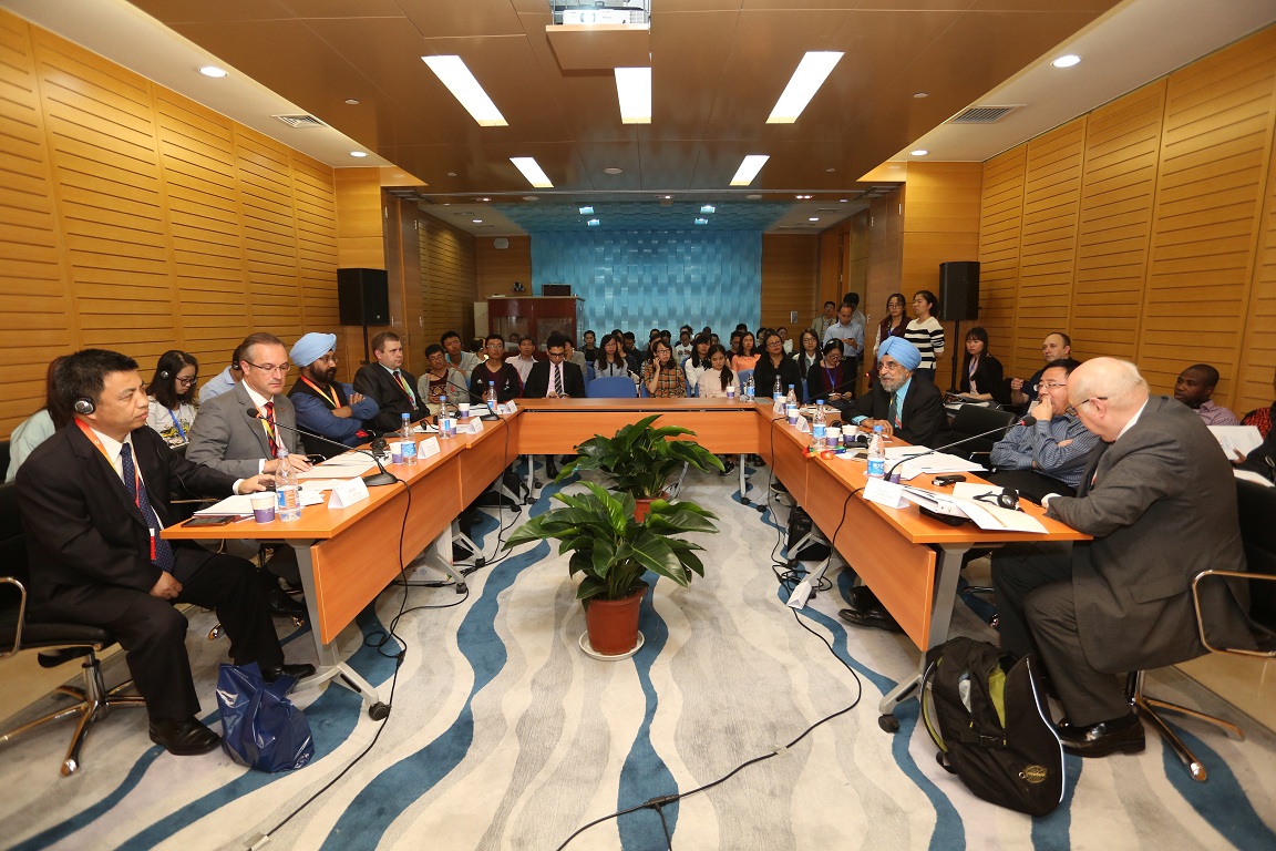 下半场会议由亚洲开发银行前常务副行长Rajat Nag主持。随着世界银行交通、水资源、城市发展局前局长Anhony Pellegrini的发言展开,国家和城市基础设施的种种挑战被一一剖析、解读。随后,针对中国国情,经管学院李实教授与在座各位一起探讨了中国收入分配的新变化。圣坦尼国际集团新加坡分公司CEO、亚洲经济问题专家Manu Bhaskaran图文并茂地展示了发展中国家的发展与转型,来自德里大学尼赫鲁学院的Rupa Basu教授就印度的可持续发展做出了精彩阐述。会议最后,在座嘉宾真诚地交换了意见,并与在场师生进行了互动。