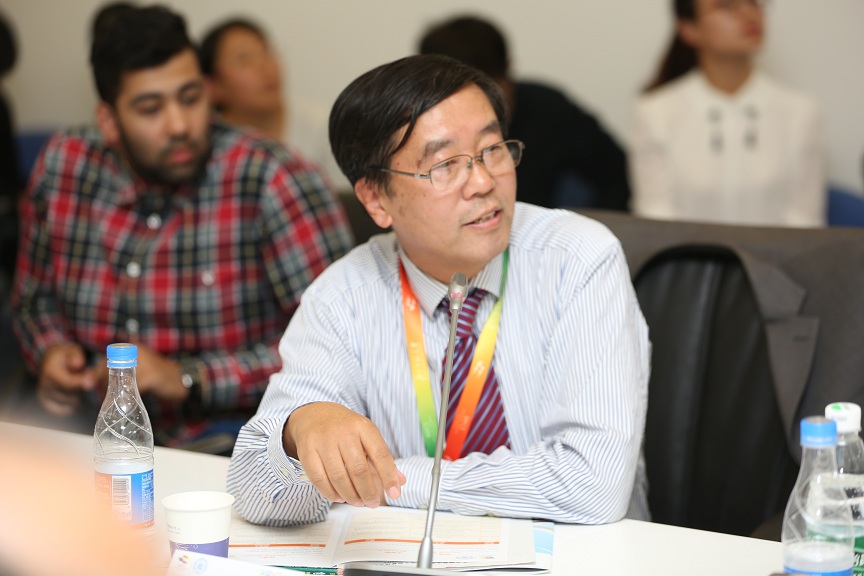 下半场的会议由俄罗斯国立高等经济学院商学院院长Nikolay Filinov-Chernyshev主持。第一位发言的是巴西坎皮纳斯天主教大学商学院院长Carlos Augusto Candeo Fontanini,他深入介绍了其所研究的高等教育国际化问题。随后,印度德里大学商学院院长Jatinder Bir Singh将印度与其他金砖国家的高等教育进行比对,在教育规模及教育质量等方面做出比较,依此提出了金砖国家间的教育差异性问题。俄罗斯普列汉诺夫经济大学管理学院院长Maxim A. Ponomarev详细介绍了金砖国家的经济合作与商业人才培养模式,并就该议题与在场嘉宾进行了交流。最后,赖德胜院长对会议进行了总结,并以“转型与创新”为核心内容,再次点明“经济发展与经济转型”的分论坛主题。在其后的提问与讨论环节中,在座师生的积极参与又一次将会议推向了高潮,在热烈的气氛中,第三会议室的会议圆满结束。