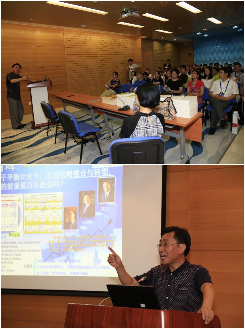 大会开幕式的下半场为主题论坛,共有四位专家作了主题演讲。山东工商学院傅志明教授、中国科学院大学时勘教授、中国人民大学方振邦教授以及福建农林大学李中斌教授分别以《基于市场化用人机制的职称体系改革研究》、《新常态下的人力资源开发理论与实践》、《管理思想百年:从科学管理到平衡计分卡》和《BCC理论方法及其导入落地实施的新进展》为题进行了主题演讲,受到了与会代表的高度评价并引发了热烈讨论。