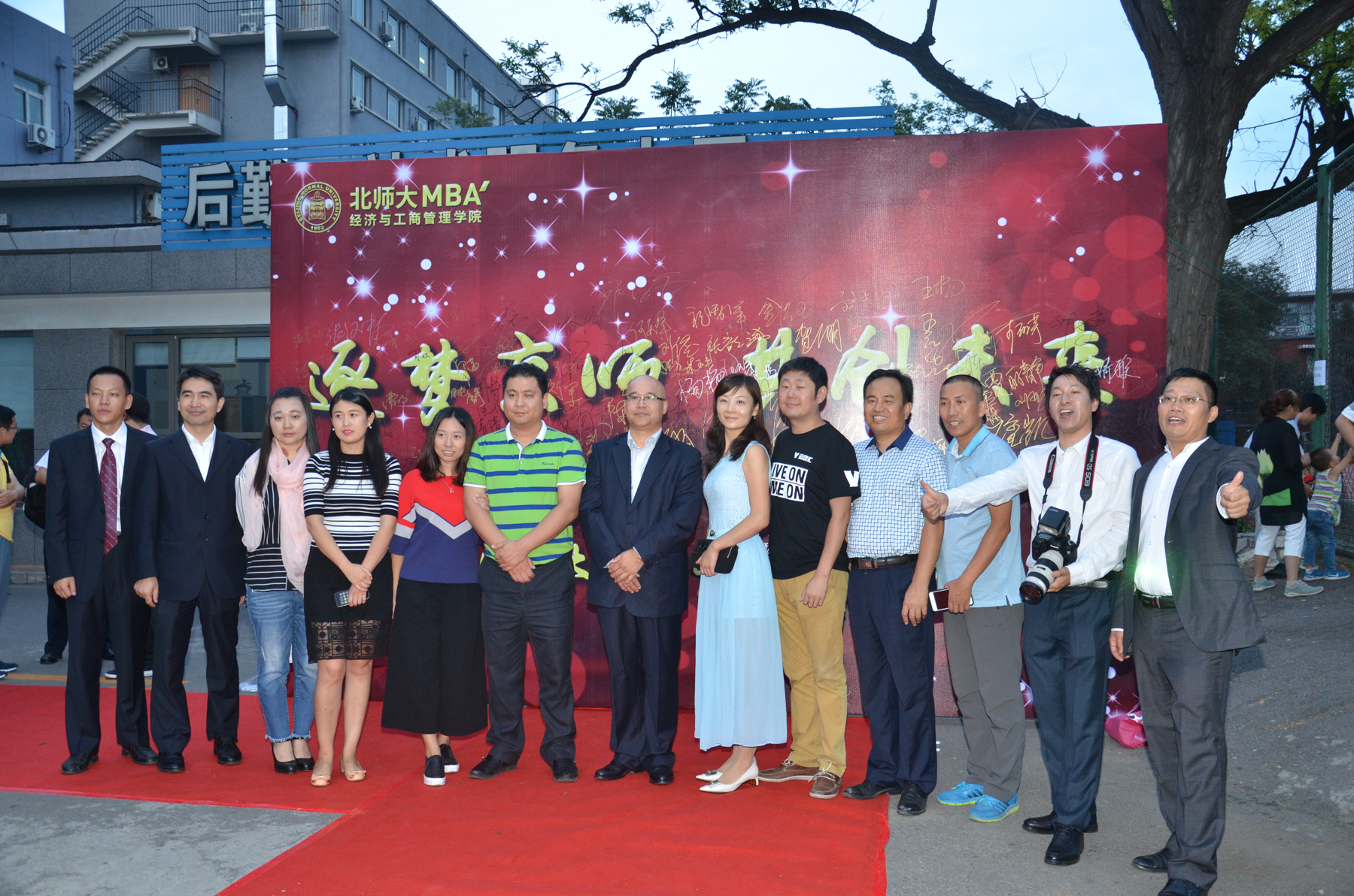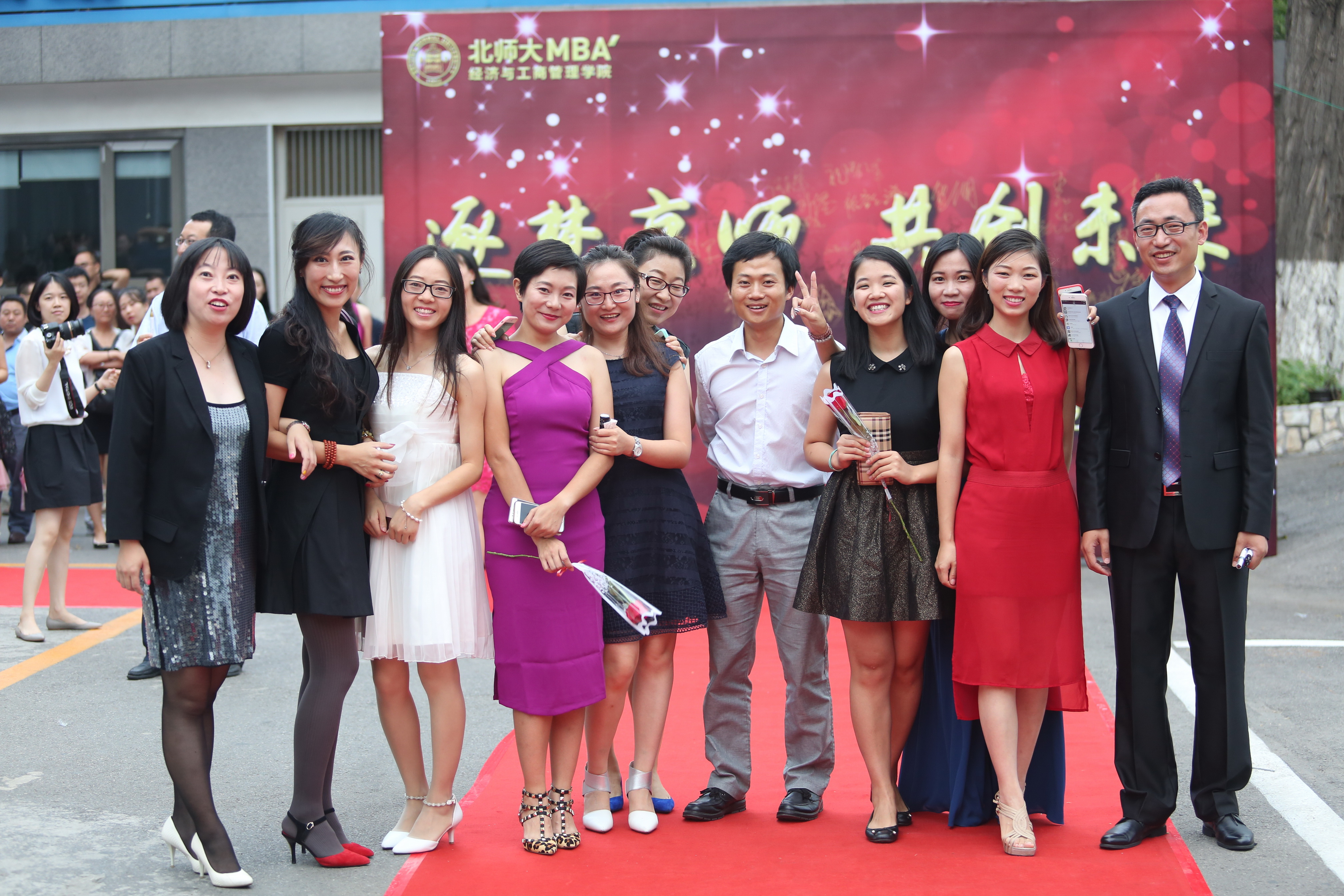 “逐梦京师 共创未来”红毯入场仪式在学生活动中心外场闪亮开幕。男士们身着正装、器宇轩昂;女士们身着礼服、高贵典雅。同学们在展示最美自我的同时也将工作多年后再一次跨入高等学府继续深造的激动心情展现的淋漓尽致。