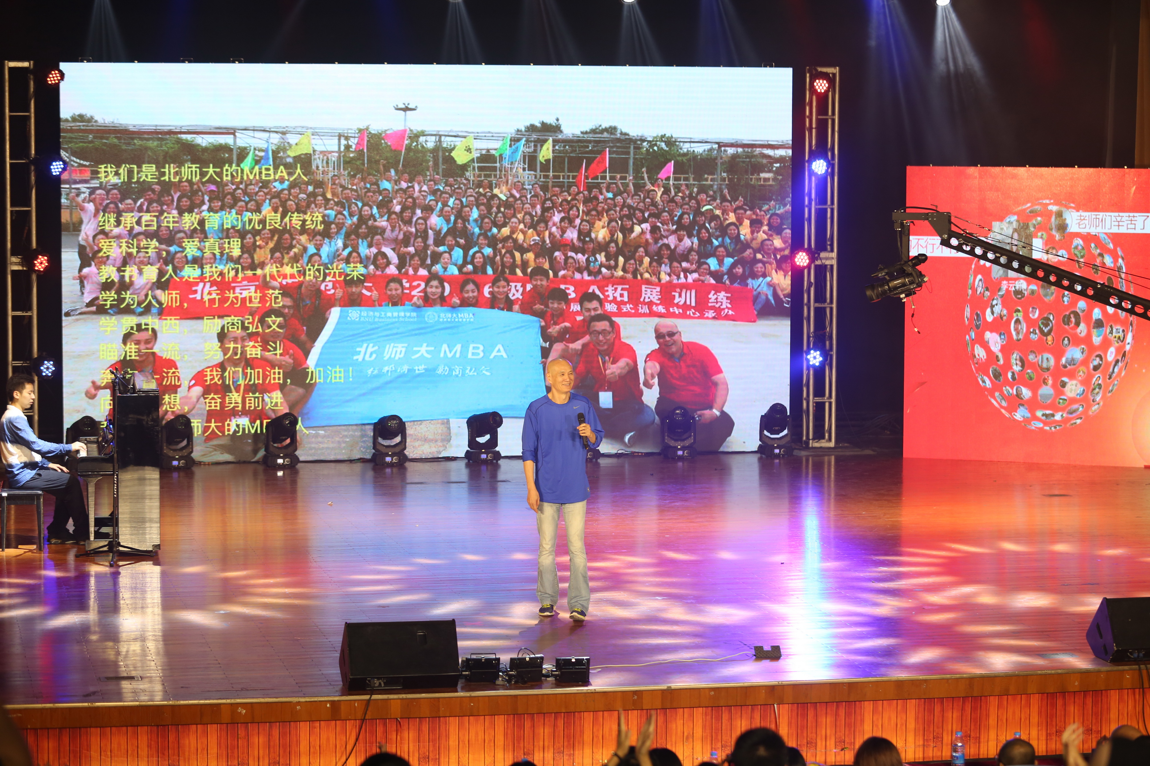 晚会现场播放了导演组精心录制的同学对老师的教师节祝福。由袁强老师演唱、中央音乐学院袁和德弹奏的表演《我们是北师大MBA人》获得阵阵掌声。